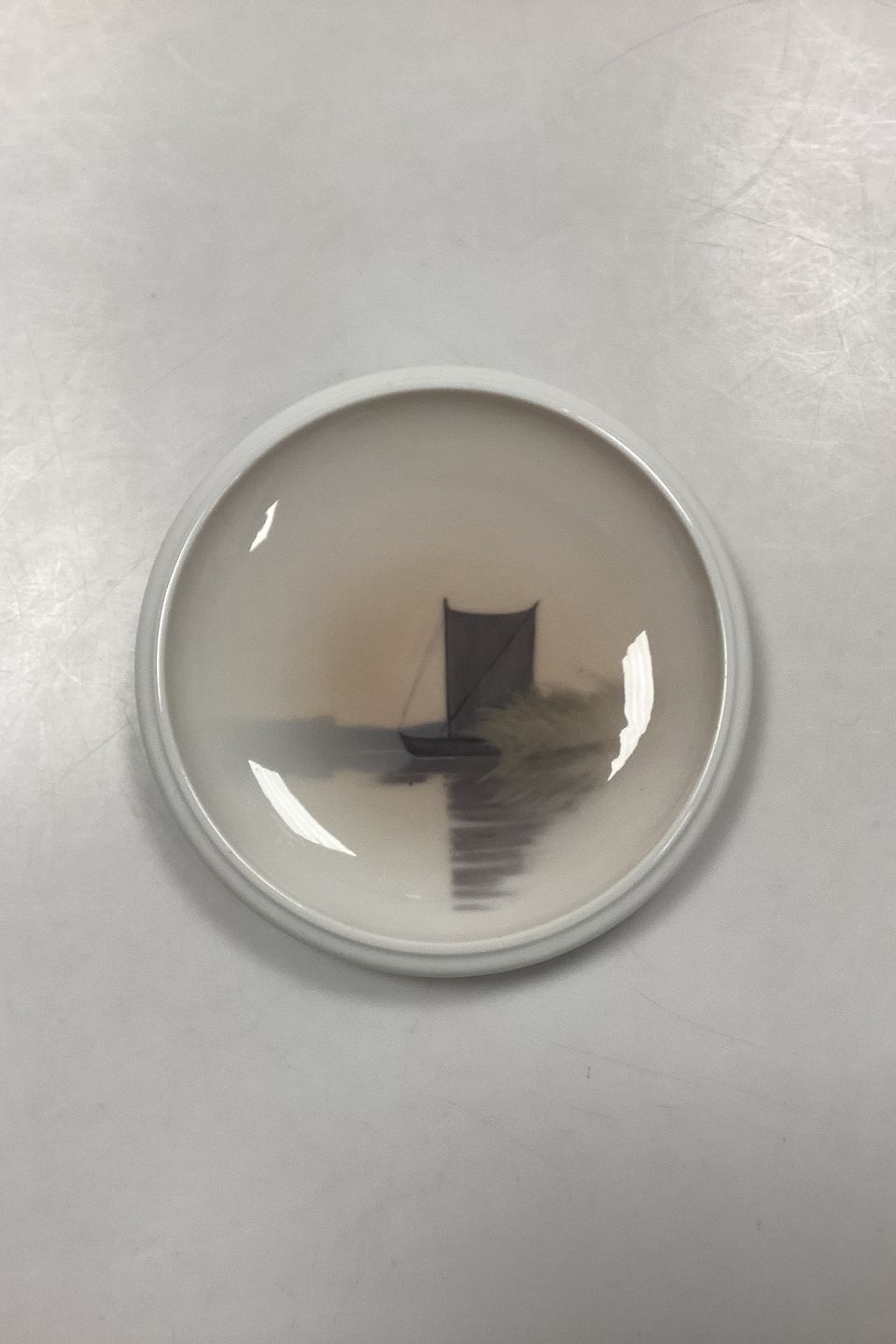 Royal Copenhagen Plate/Dish No. 2506/2568. Motif with sailboat in the evening twilight.Measures 18 cm / 7.08 in. 1st Quality. In fine condition.