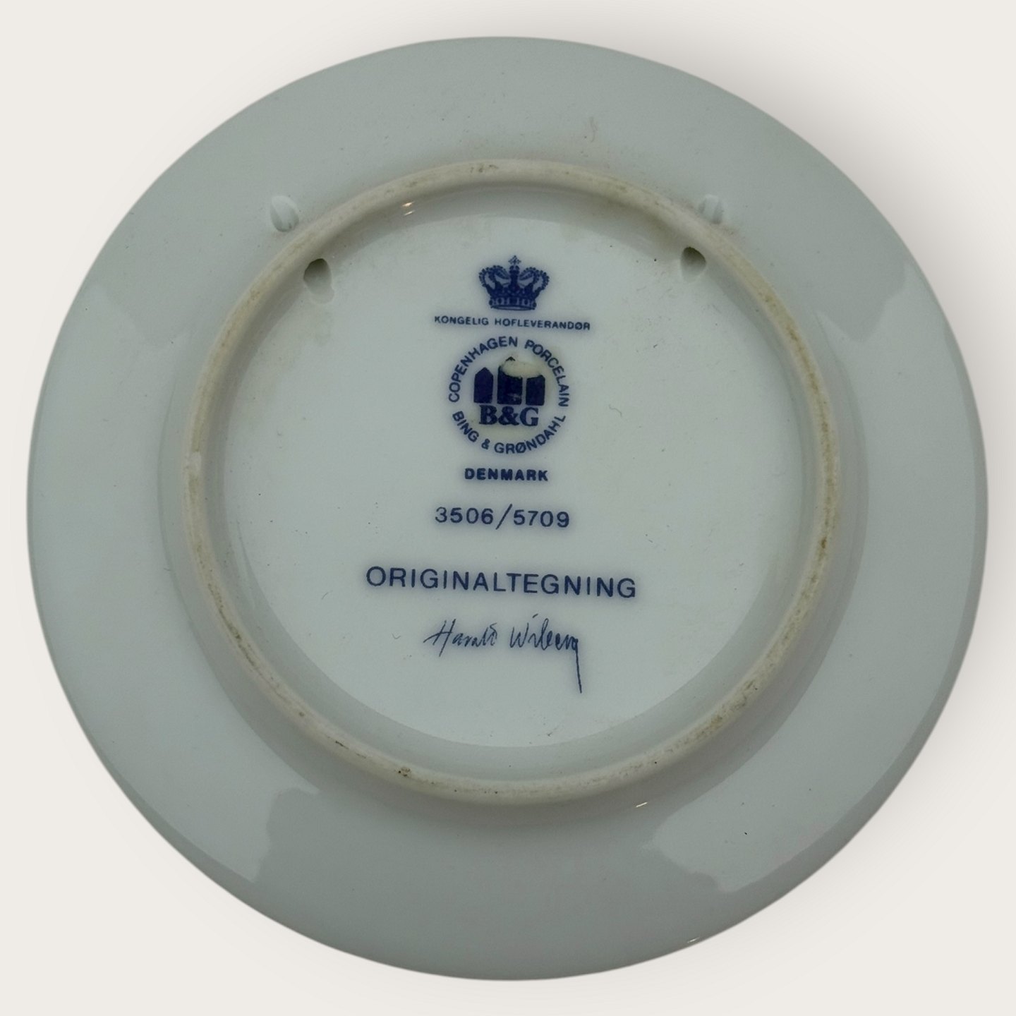 Bing & Grøndahl, Christmas set, Santa and the cat at the door, Plate with gold rim #3506 / 5709, 10.5cm in diameter, 2nd grade, Design Harald Wiberg *Good condition*Stock: 1