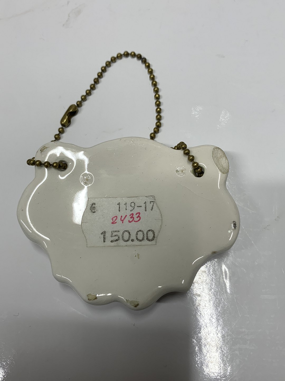Bottle / Decanter Vermouth sign with chainSize 7 x 5.5 cm.