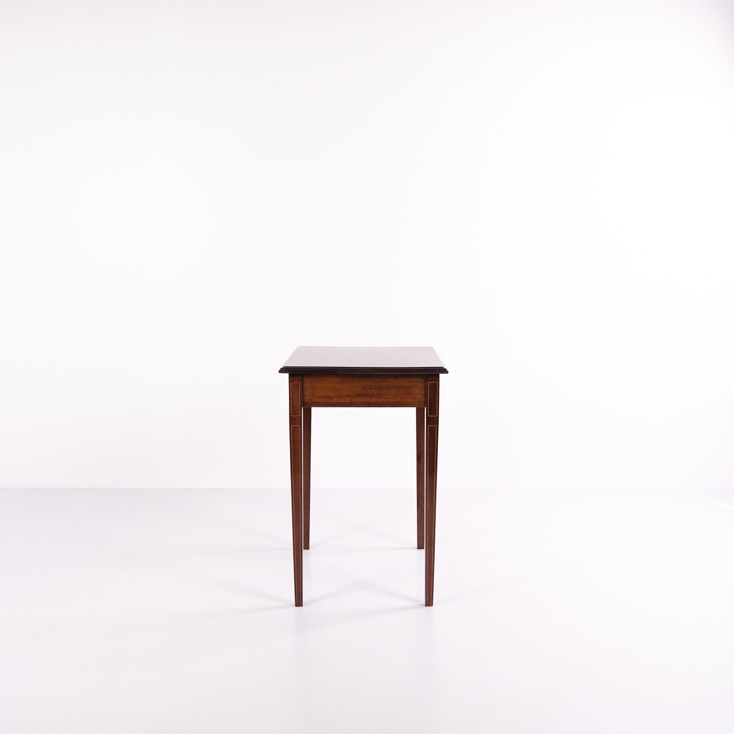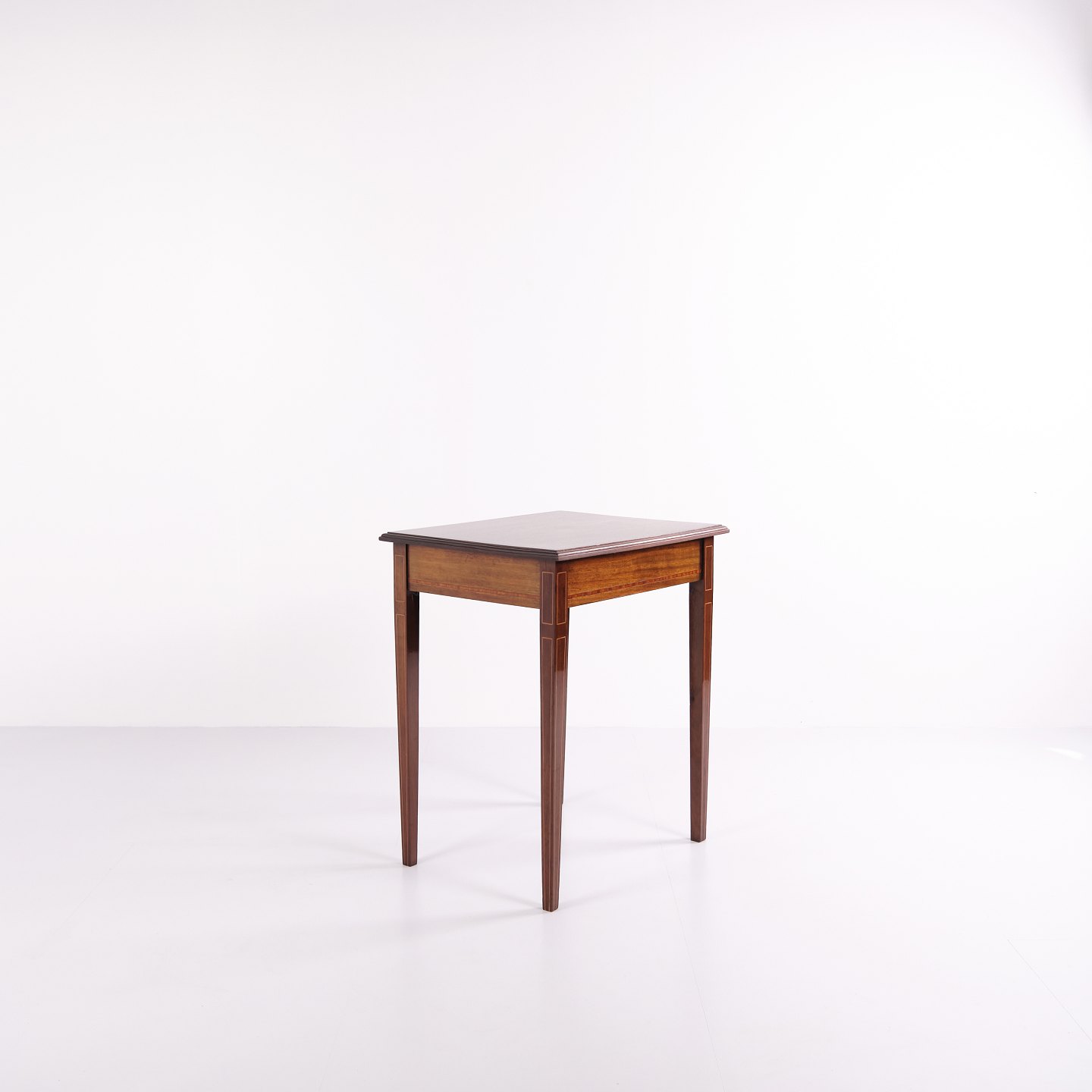 Side Table Decorated with Fruitwood Inlay Crafted in Hand-Polished Mahogany from the 1920s— Origin: Europe