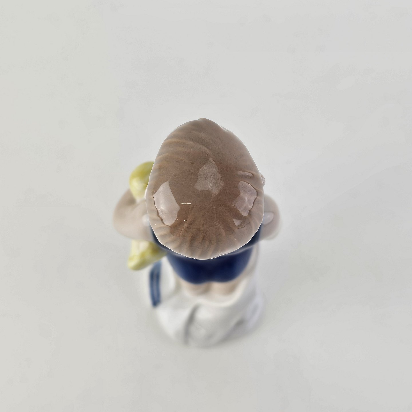 Figur i kongeligt porcelæn med form af en lille pige i en blå badedragt med et håndklæde og en badeand