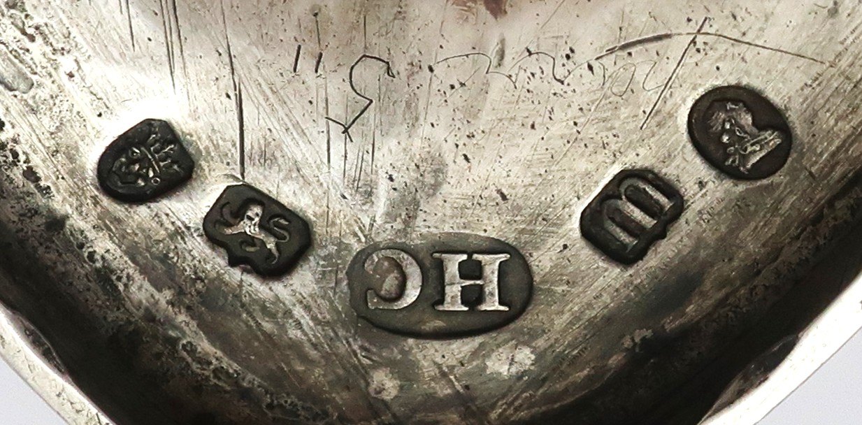 England. Henry Chawner, London (H C). Sterling salt cellar / spice cellar. Gilded inside. Height 7 cm. Width 14 cm. Produced 1787 Dealer