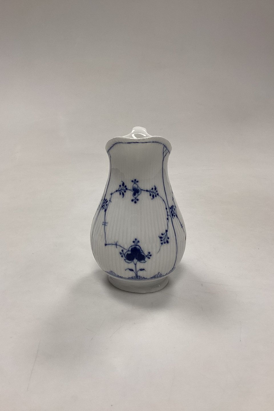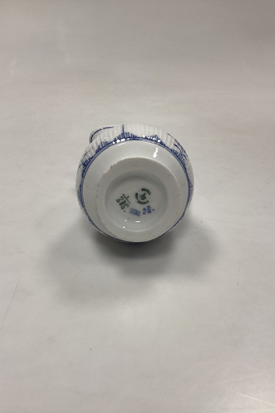 Royal Copenhagen Blue Fluted Plain Cream Jug No. 385. Has small chips at the bottom, see photo.Measures 12.5 cm / 4.92 in. 2nd Quality