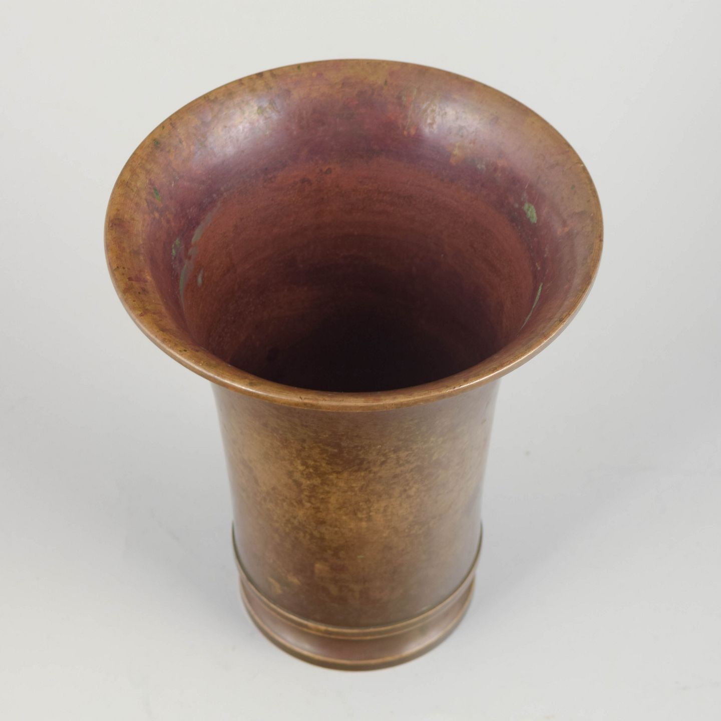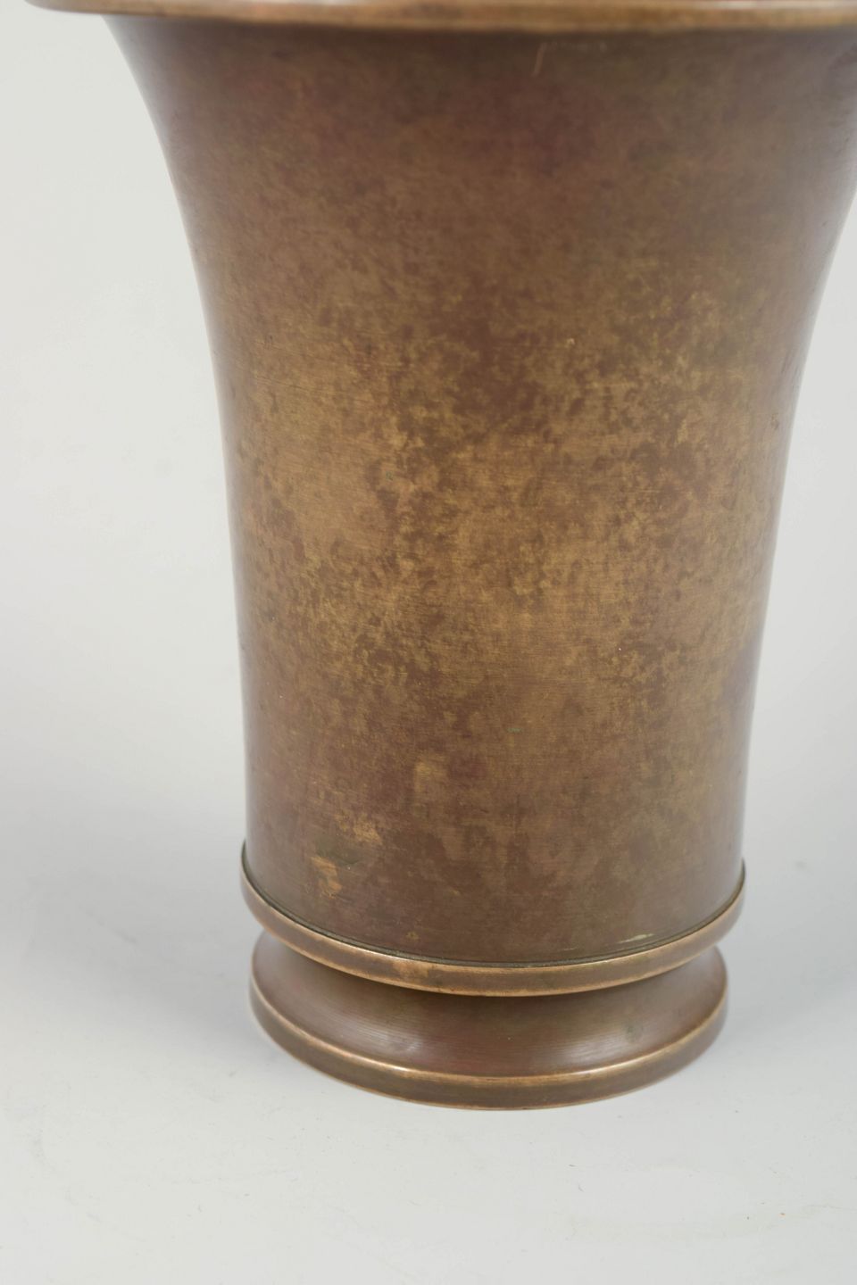 Tumulus bronze vase, 1940s. Denmark.Classic Art Deco vase in patinated bronze with a flaring conical shape and gently curved rim. The warm brown surface has a natural age patina typical of the period.