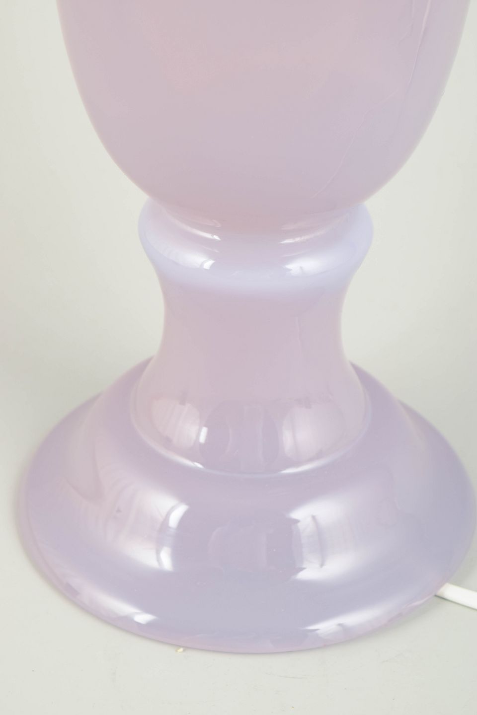 Large art glass table lamp, 1980s.Elegant table lamp in blown glass with a soft turquoise-lilac tone and classic urn-shaped base. Original socket, cord replaced later.