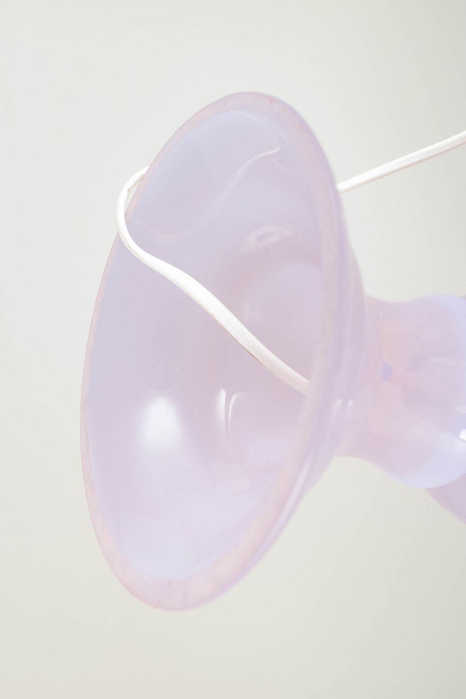 Glass lamps of the 1980s often drew inspiration from earlier opaline and urn-shaped designs, reinterpreted in modern pastel tones such as lilac, turquoise, and pink. They combined functionality with sculptural presence, fitting seamlessly into both Nordic and Italian interiors.