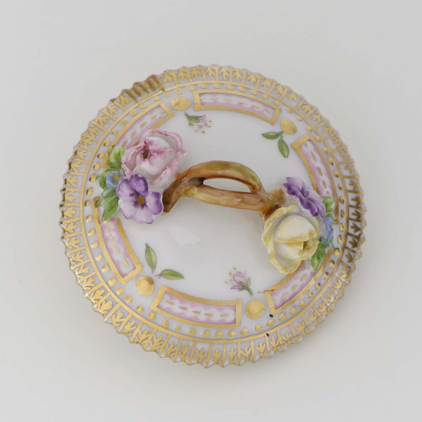 Låg til cremekop i porcelæn fra stellet Flora Danica. Nr 20/3514Producent Royal Copenhagen