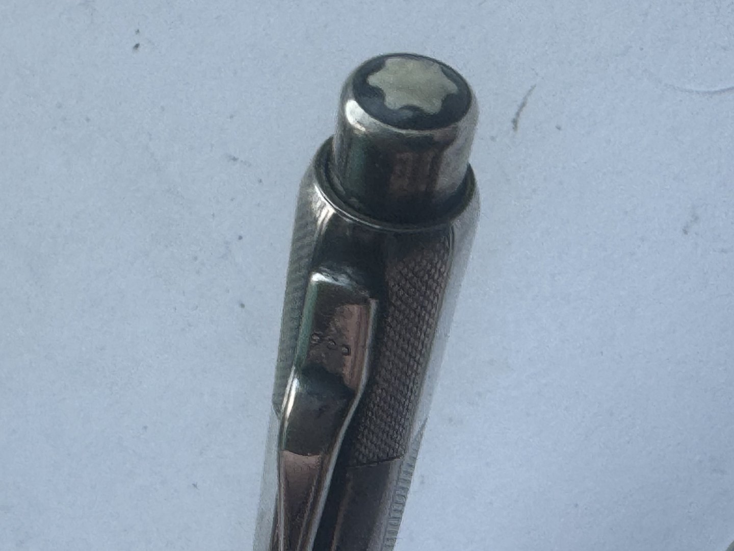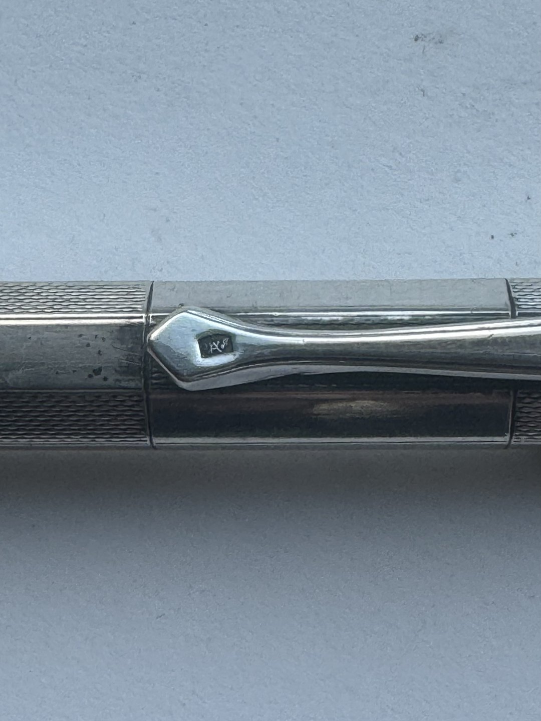 PURE ART DECO STYLE: Octagonal Montblanc Pix pencil in silver. Appears in good and functional condition. No damage. Factory mark on the side. Silver stamp on the clip (900). Length: 11.8 cm Dealer