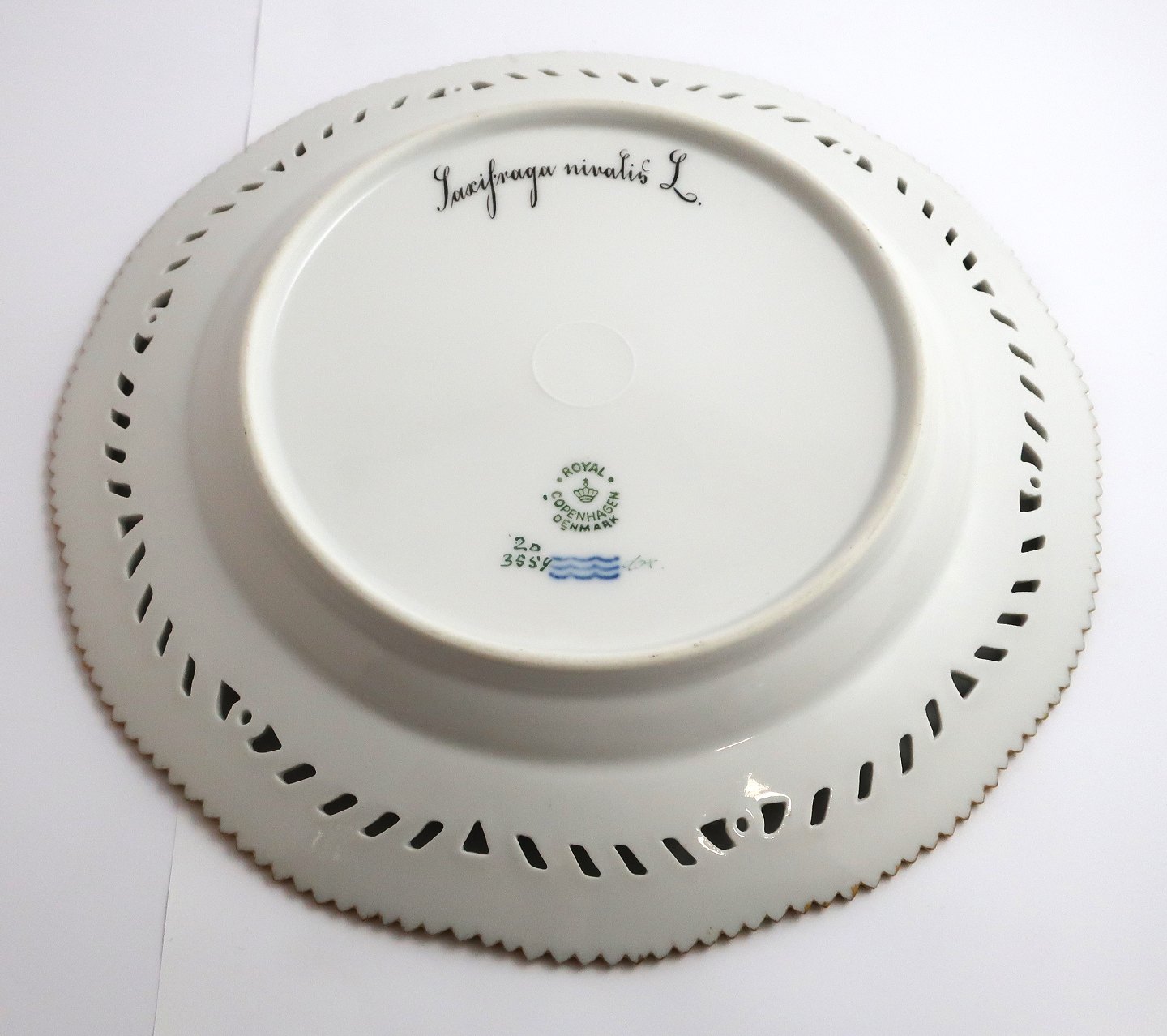 Royal Copenhagen Flora Danica. Lunch plate with open-work border. Design # 3554. Diameter 23 cm. (1 quality). Saxifraga nivalis L Dealer