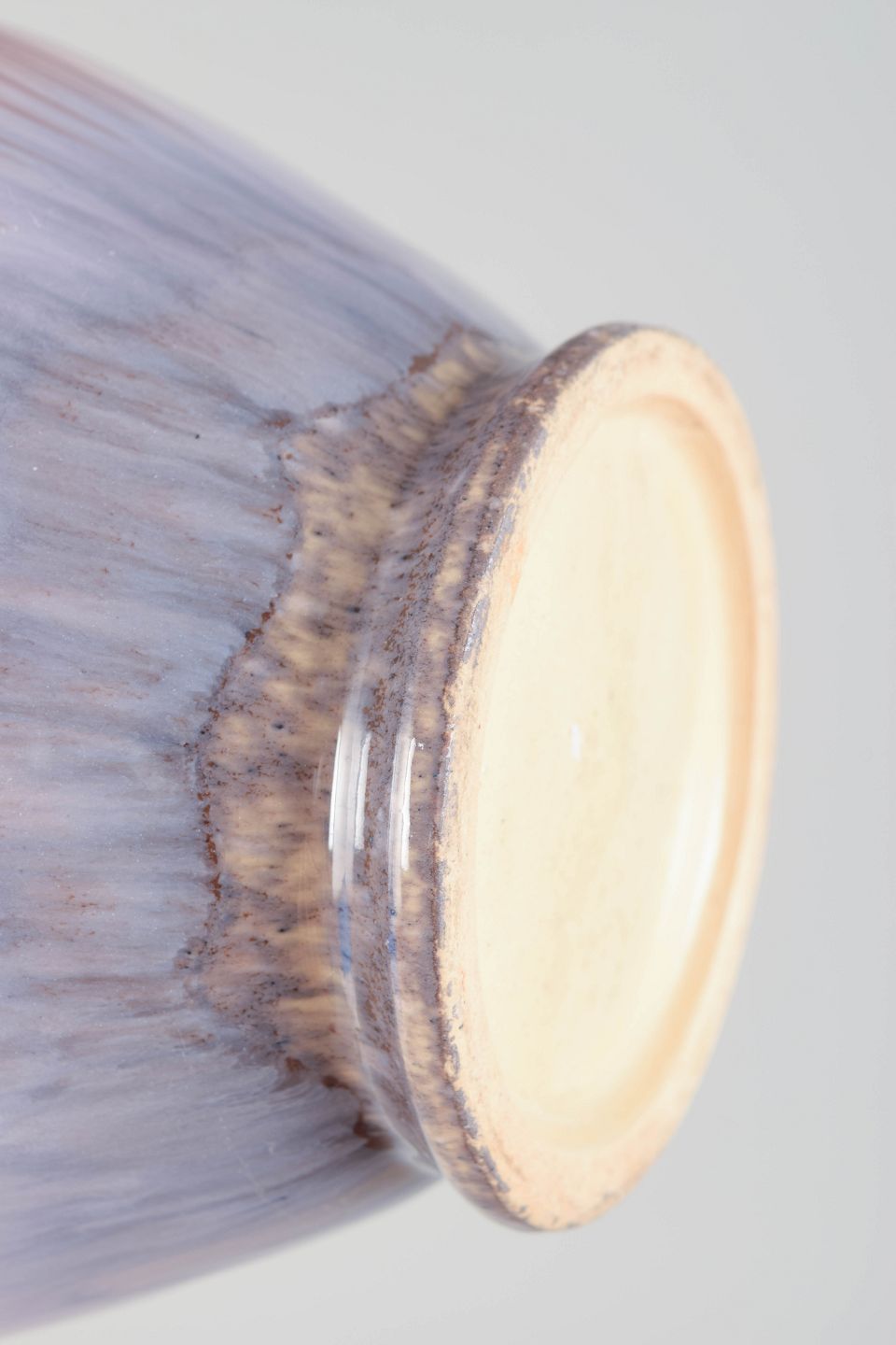 The mid-20th century was a vibrant period for European studio pottery, with makers exploring expressive glazing and hand-thrown forms. Vertical drip glazes—like those on this vase—were prized for their movement and individuality, making each piece visually unique. Many artists worked in small workshop settings, producing limited, character-rich pieces that are now appreciated as fine examples of mid-century ceramic craftsmanship.