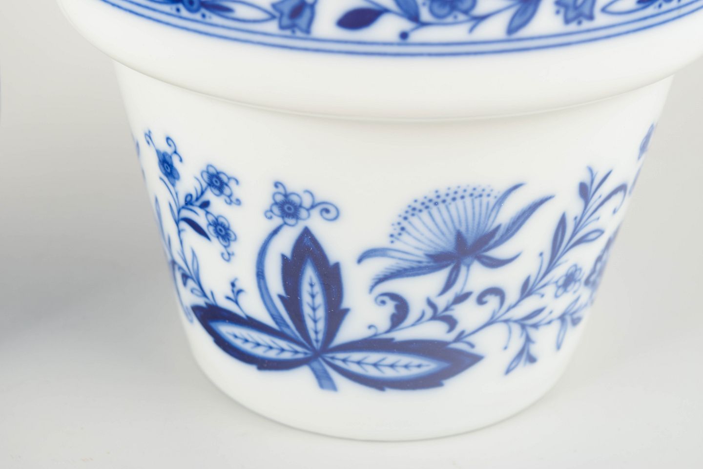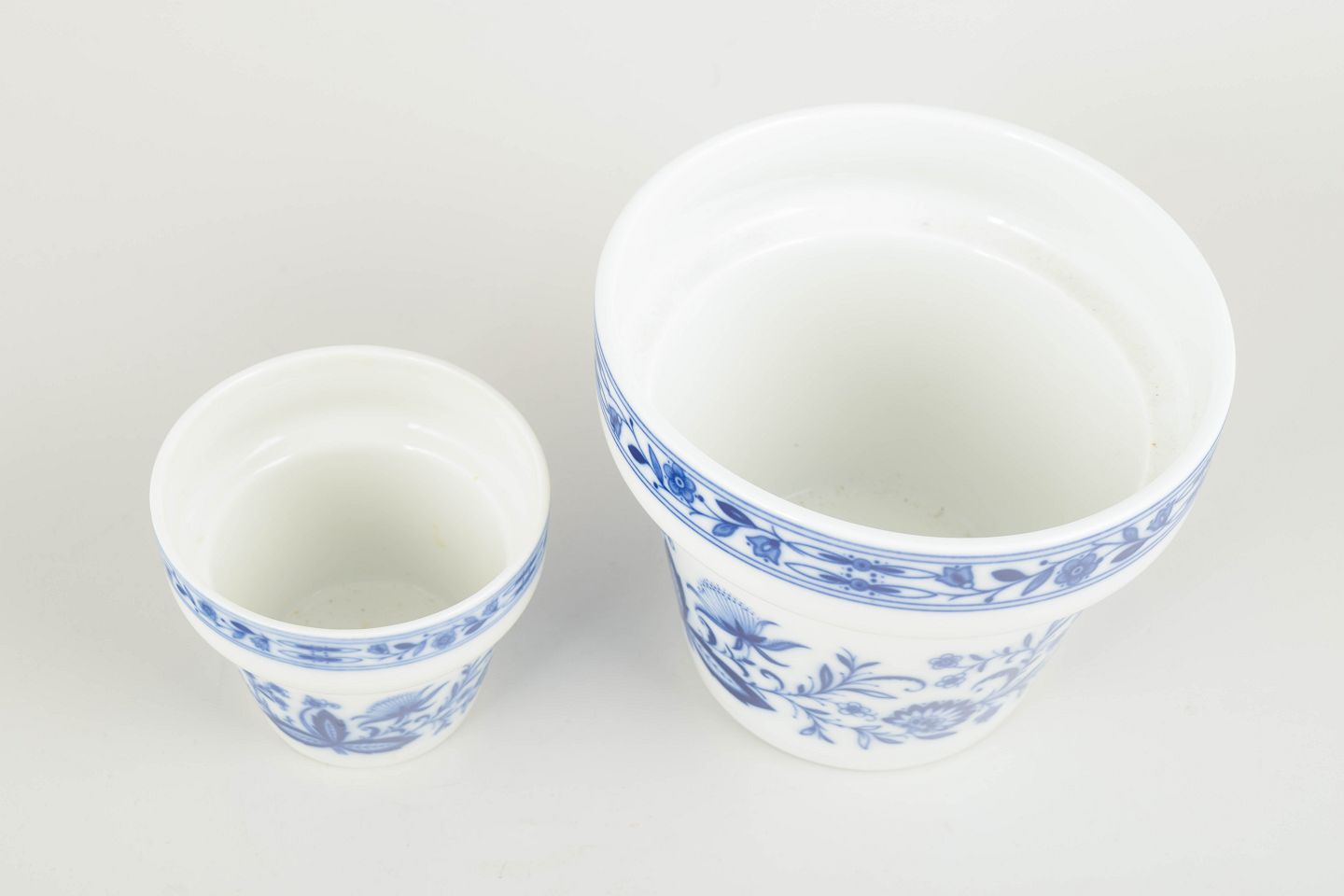 Kronester, Tyskland, to urtepotteskjulere.To klassiske urtepotteskjulere i hvidt porcelæn med håndmalet, koboltblå dekoration i traditionel stil.