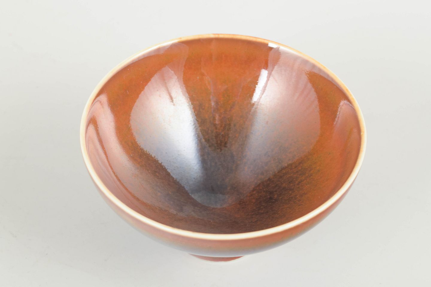 Elegant footed bowl in glazed stoneware with warm brown-red hues and darker tonal shading, executed in Stålhane’s characteristic refined glaze technique.