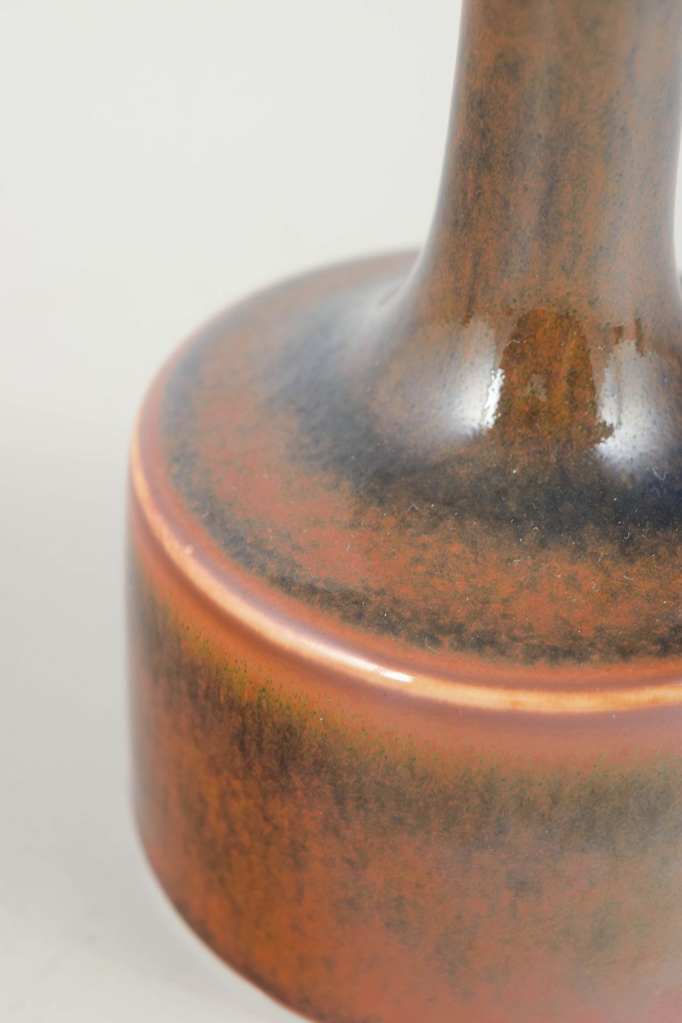 Elegant cylindrical vase in glazed stoneware with a tall, slender neck and warm brown-red and dark tones in a characteristic Stålhane glaze.