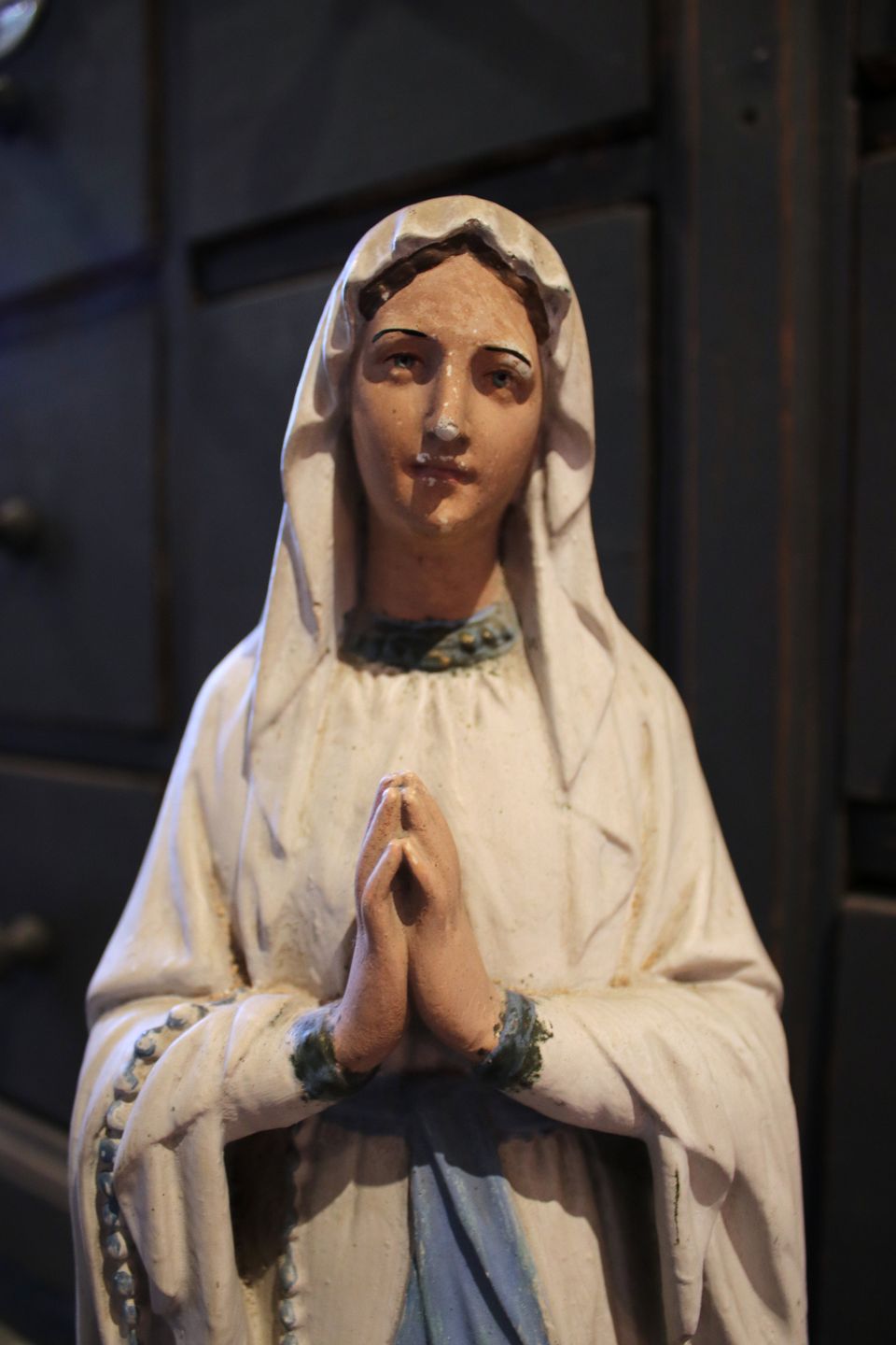 Fine, old French Madonna figure in painted plaster with a fine old patina. Height: 56cm. Dealer