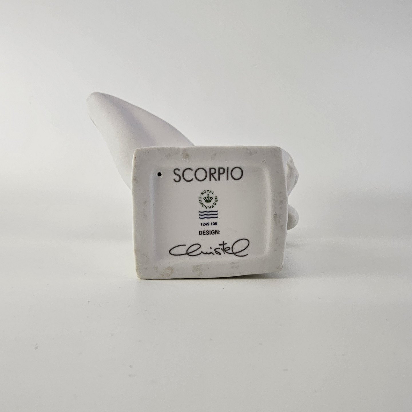 Figur i hvidt kongeligt porcelæn med motiv af stjernetegnet skorpionen og titlen ScorpioNr. 1249 109