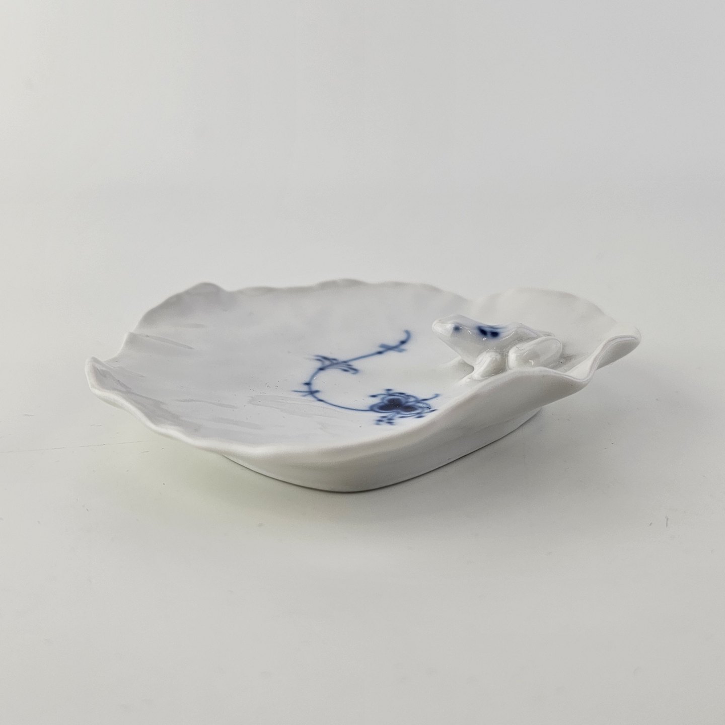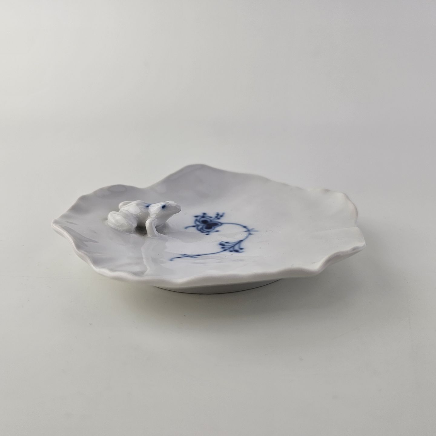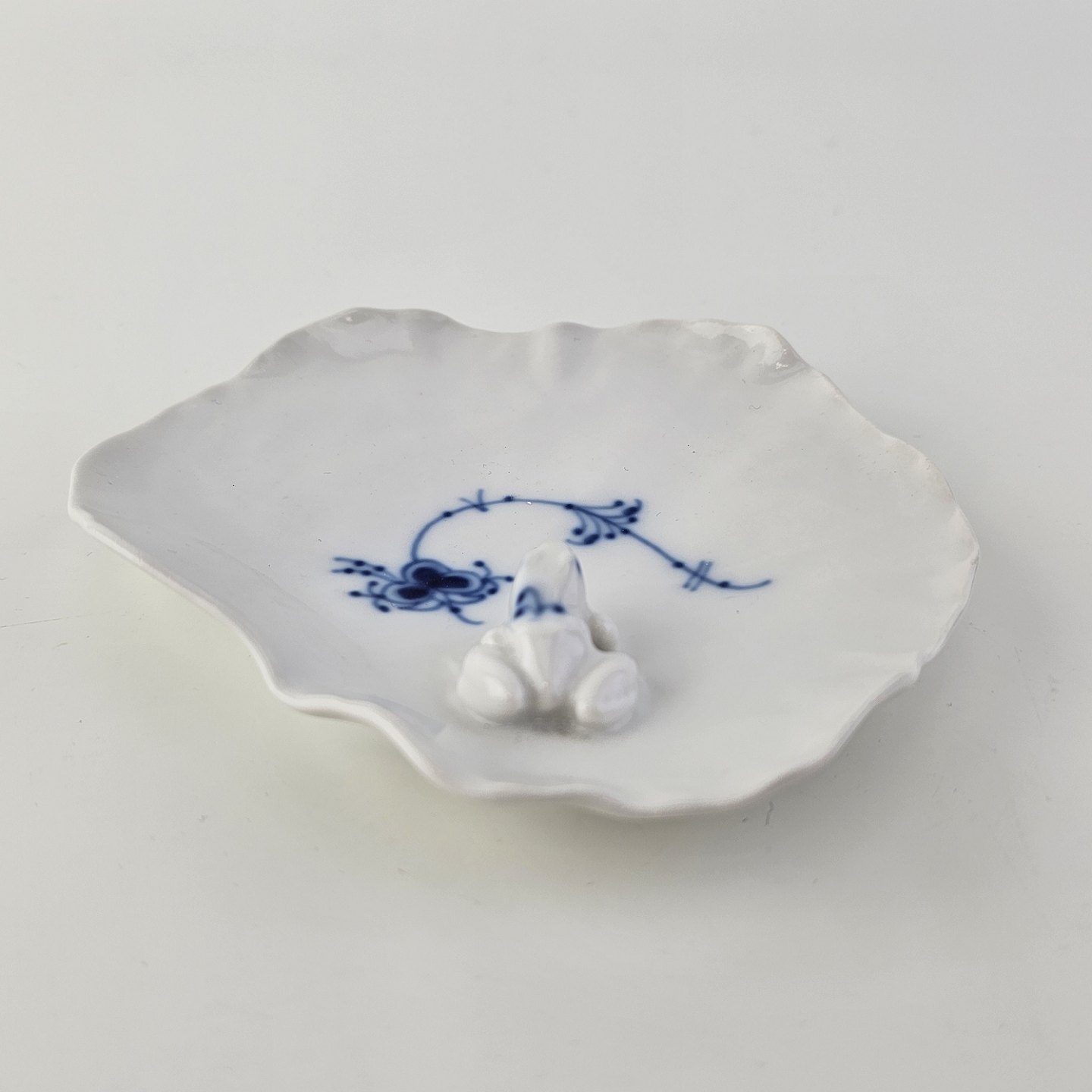 Skål i hvidt kongeligt porcelæn med motiv af en frø på en åkande og musselmalet dekorationNr. 173