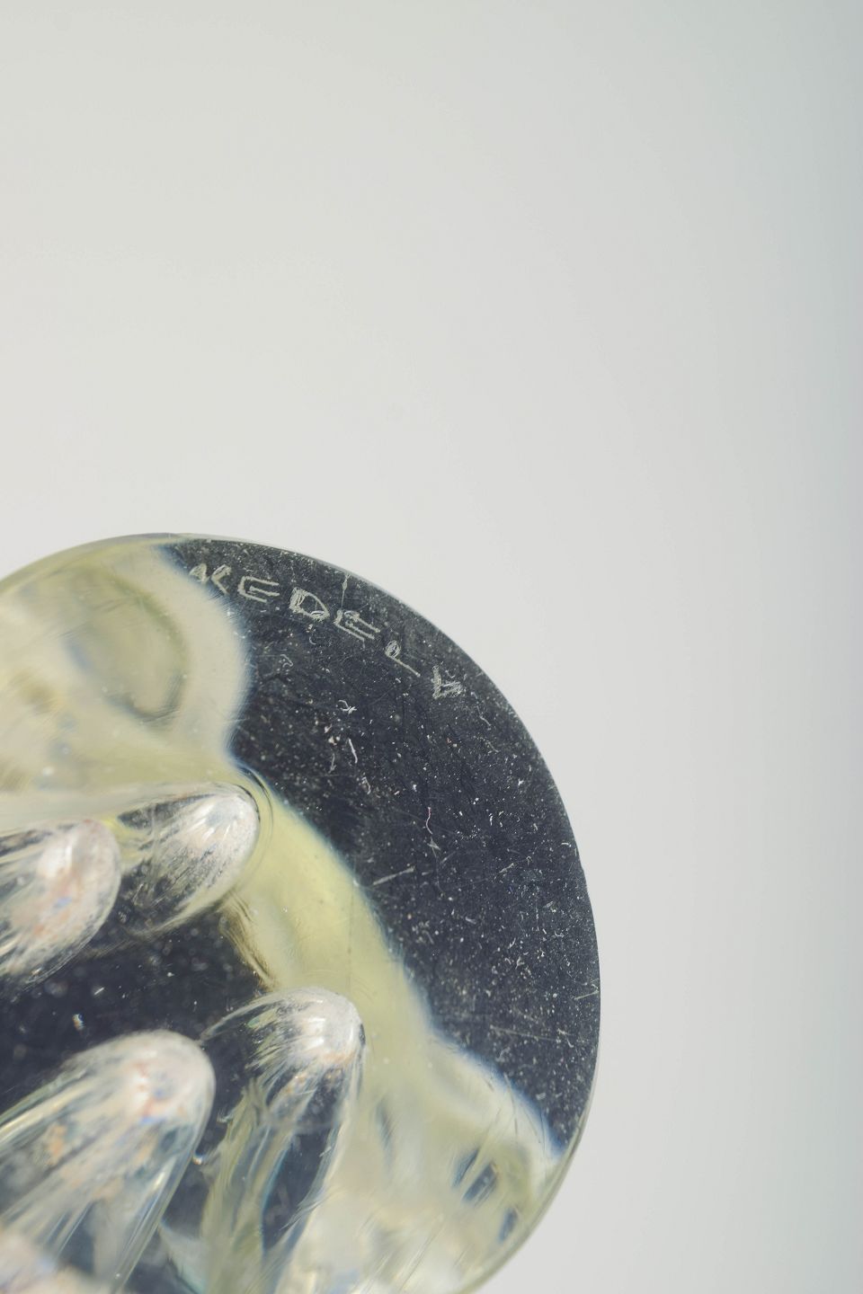Paul Kedelv (1917–1990) created the Coquille series at Flygfors as one of the most iconic expressions of Swedish modernist glass. The series is celebrated for its bold organic silhouettes, layered colours and sculptural presence, which brought Flygfors international recognition in the 1950s. Today, Coquille remains highly sought after by collectors of Nordic art glass.