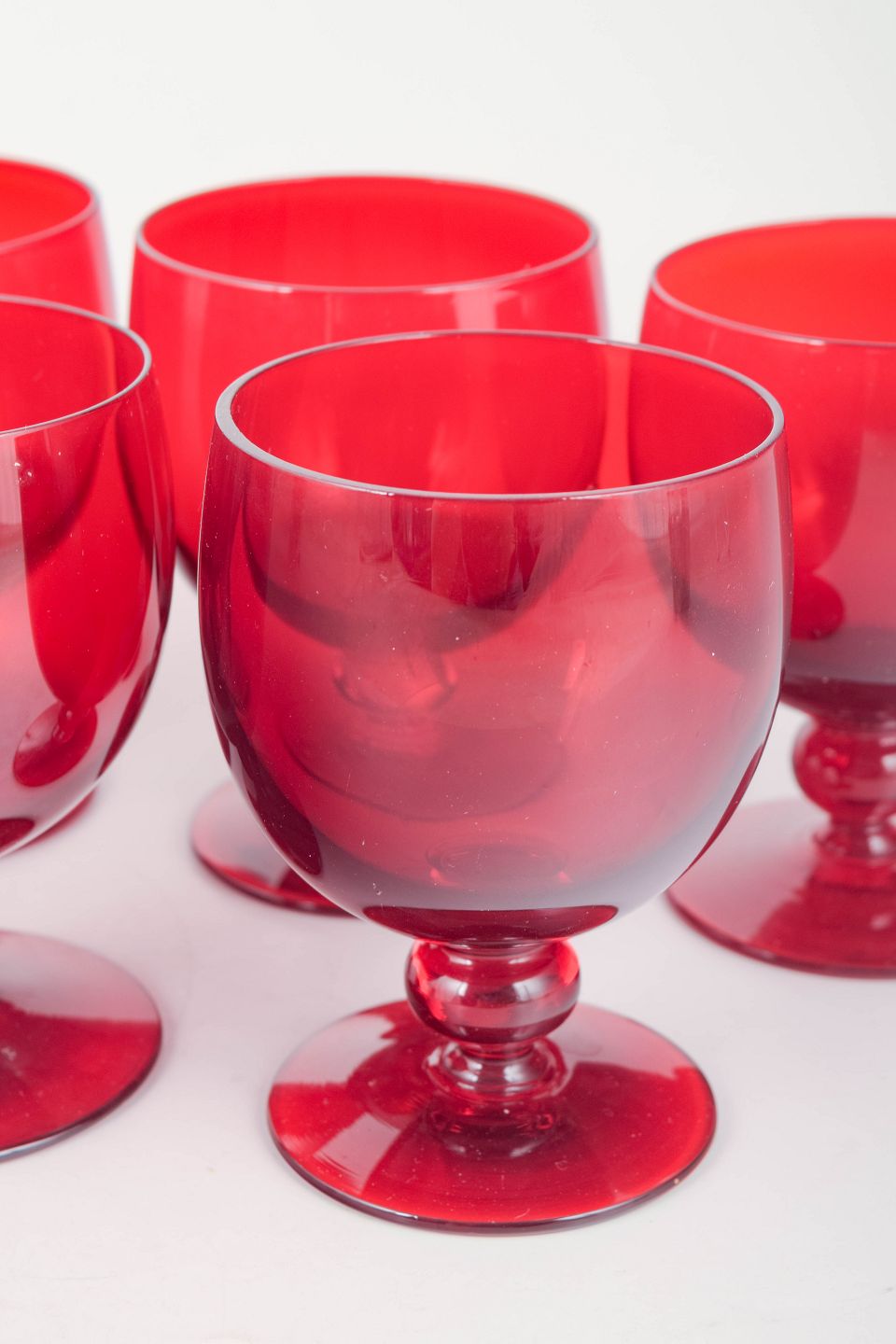5 red wine glasses, 1950s.