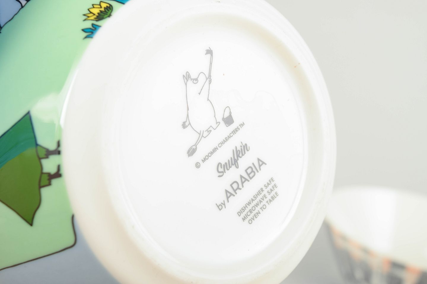 Arabia Finland has produced Moomin tableware since the 1990s in collaboration with Moomin Characters, using Tove Jansson’s iconic mid-century illustrations. The series is now highly collectible, with many motifs released for limited periods, making the bowls sought after among collectors worldwide.