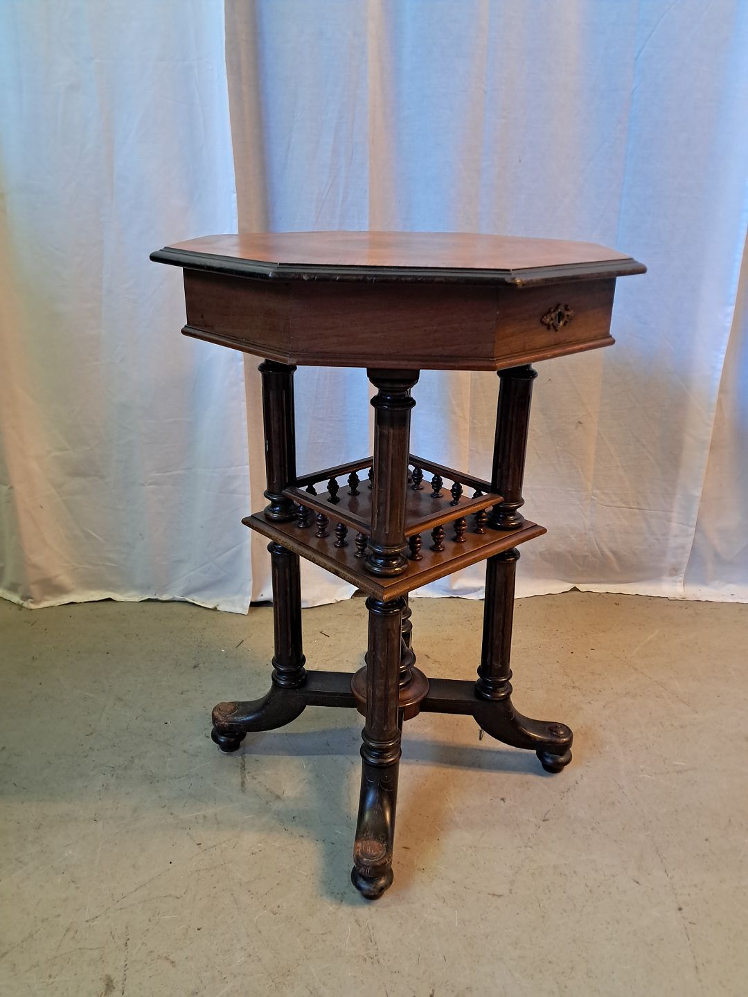 Sybord i fineret mahogni, fra 1910erne.Det har brugsspor.