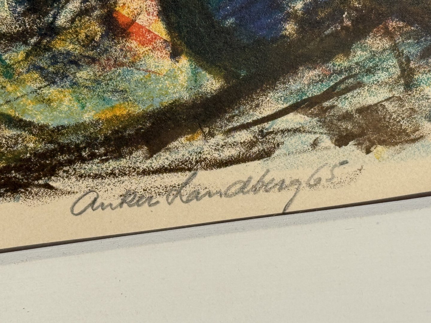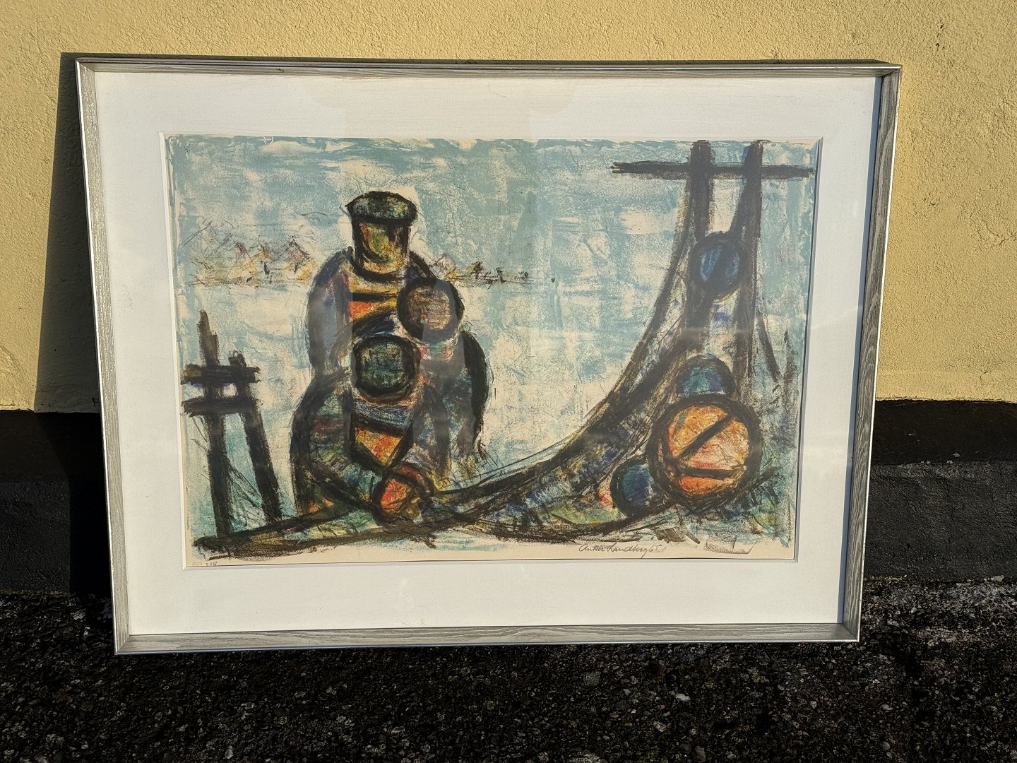 Anker Landberg, Lithograph in frame, Fishermen repairing nets, signed Anker Landberg 65, Dimensions: 67x46cm, Dimensions with frame: 82x63cm *fine condition*Stock: 1