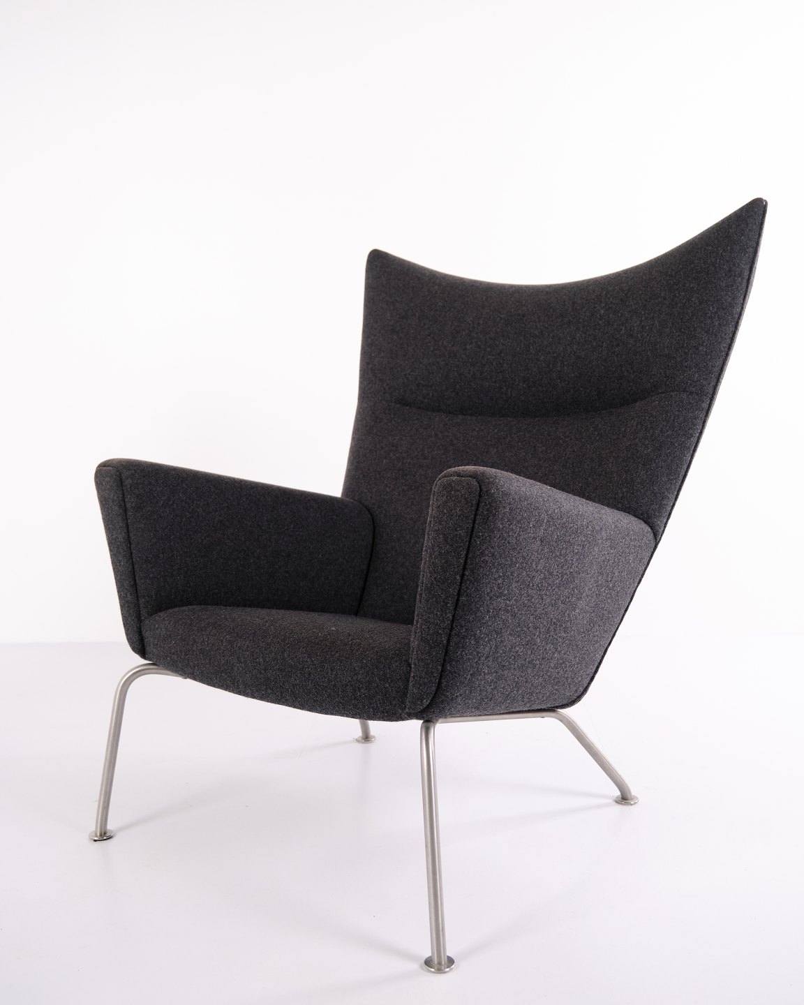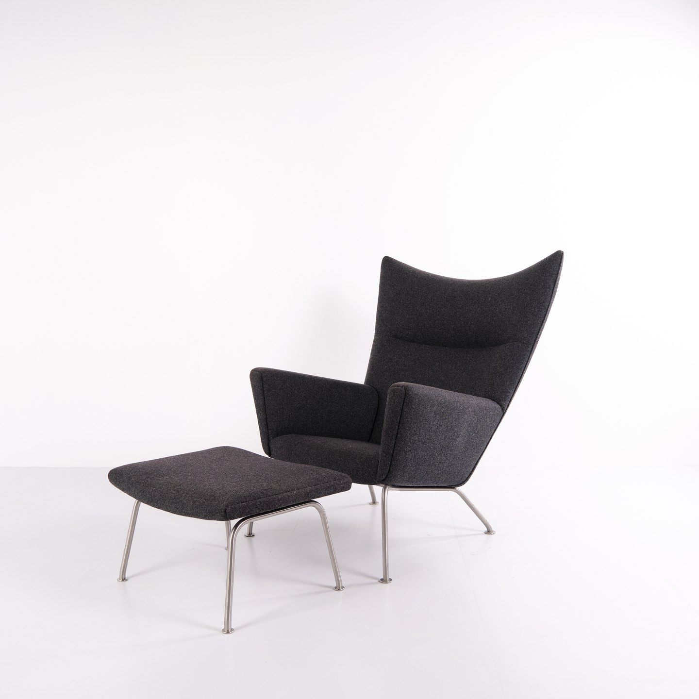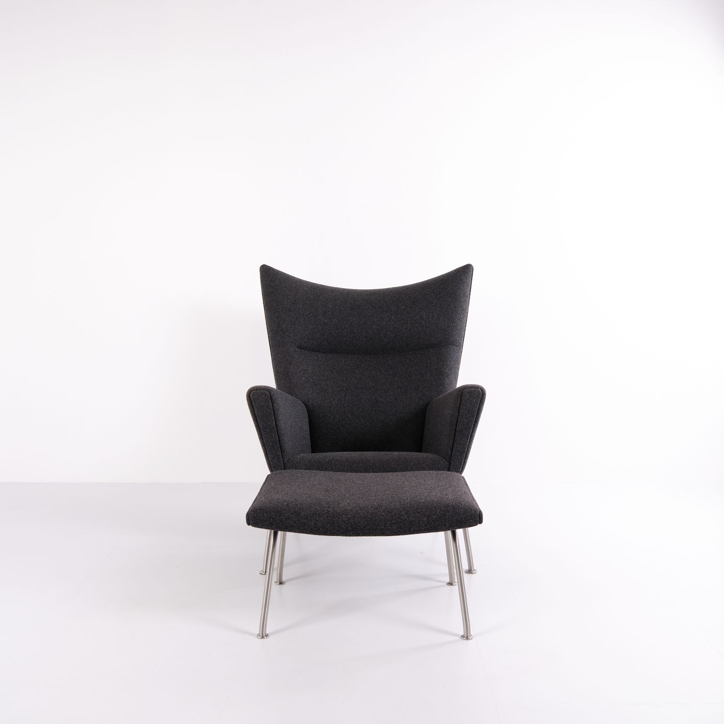 Wingchair – Hans J. Wegner – Model CH445 – Carl Hansen & Søn – Grey Hallingdal – With Footstool