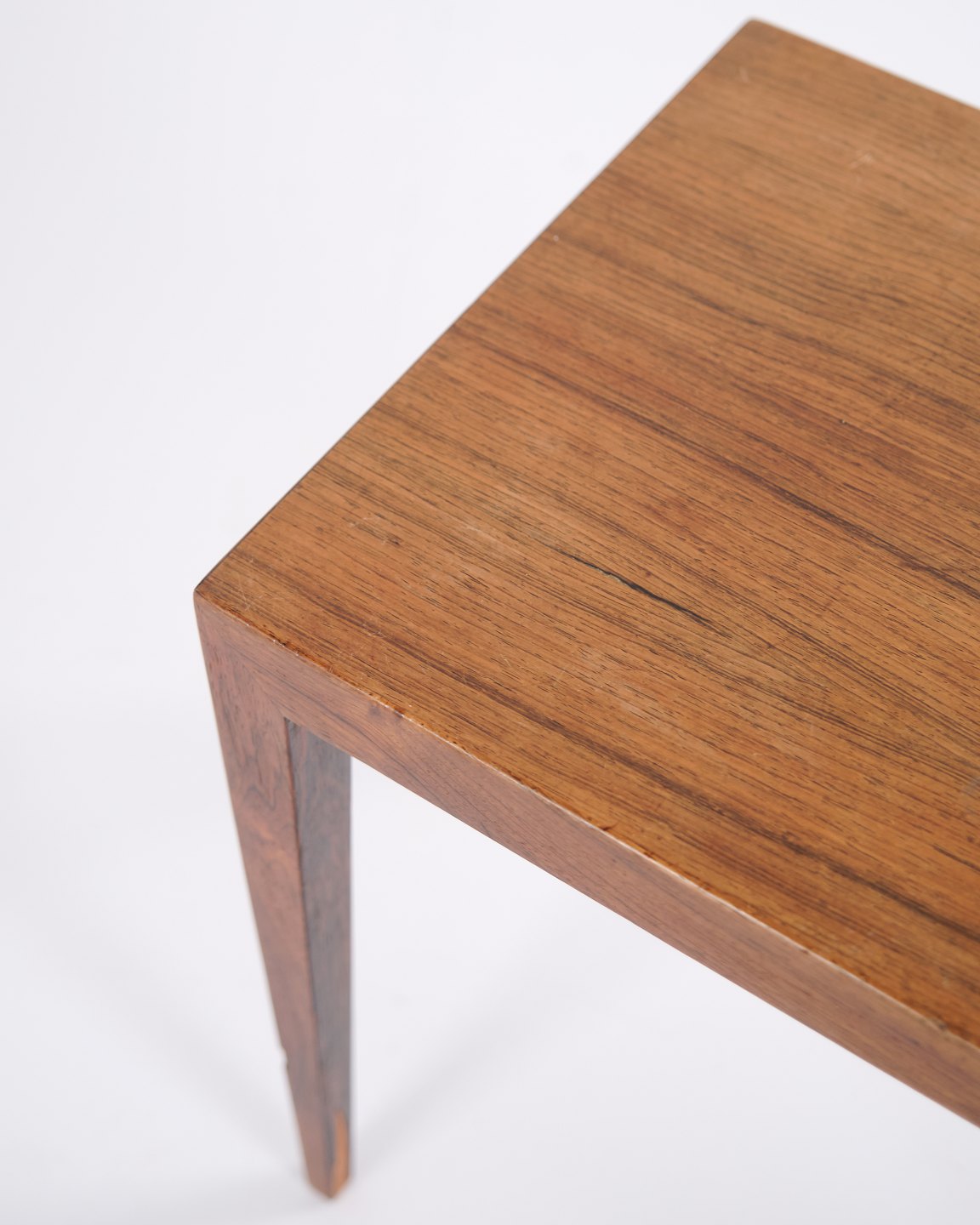Side table or nightstand, model 41B, designed by Severin Hansen and produced by Haslev Møbelfabrik in the 1960s. Made in rosewood with the characteristic mitred joints that define Hansen’s work. An elegant and sought-after piece of Danish design.— Designer: Severin Hansen