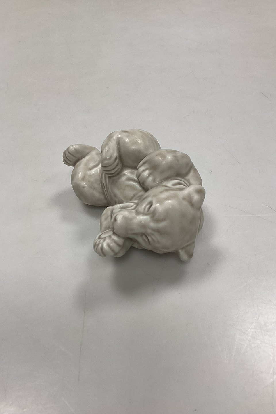 Royal Copenhagen Stoneware Figurine White Bear Cub No. 21432. Designed by Knud Kyhn. Matt glaze in white-beige shades.Measures 4 x 9 cm / 1.57 in. x 3.54 in.