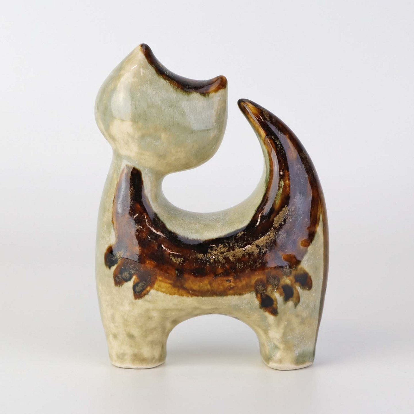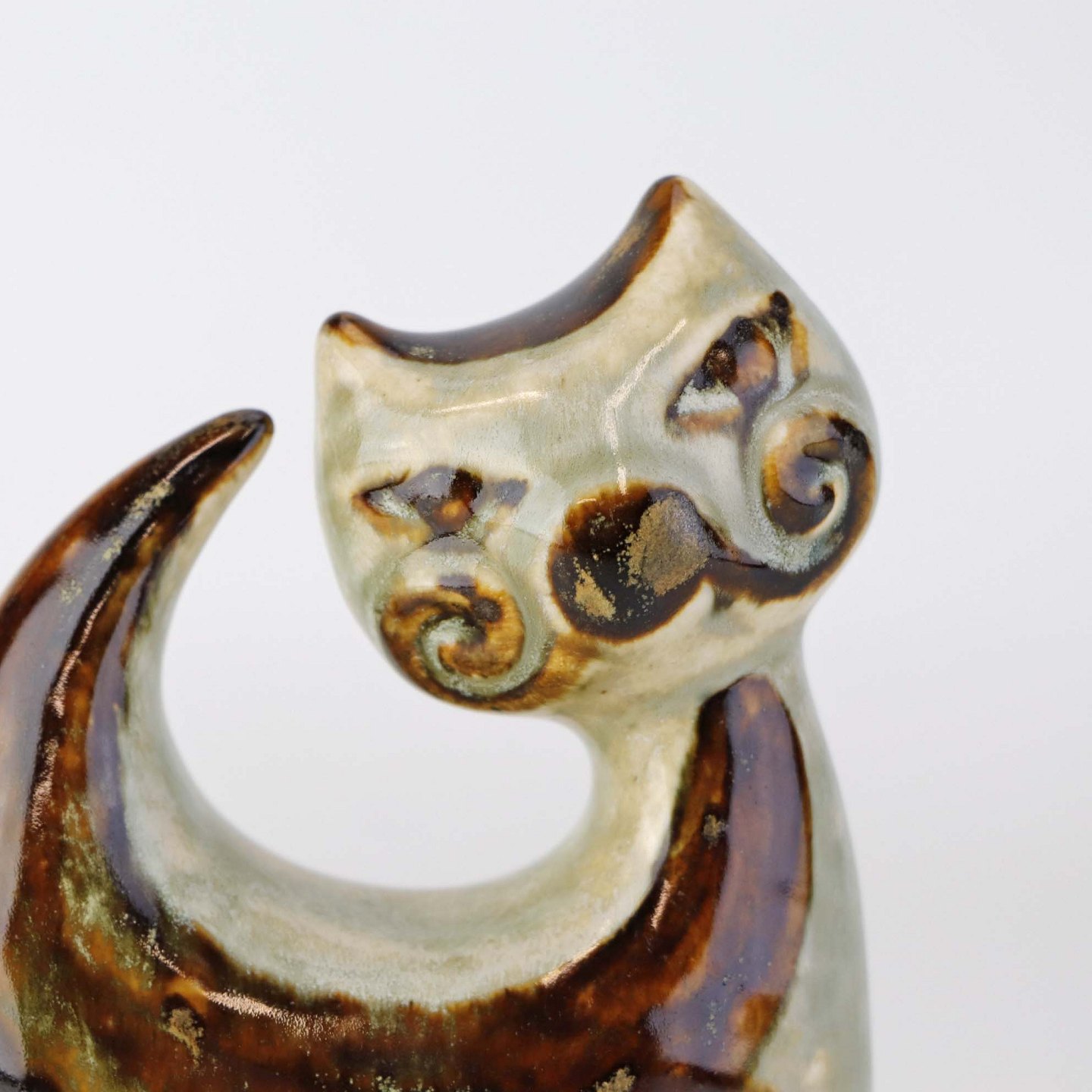Figur i glaseret keramik med motiv af en kat.Producent Søholm keramik