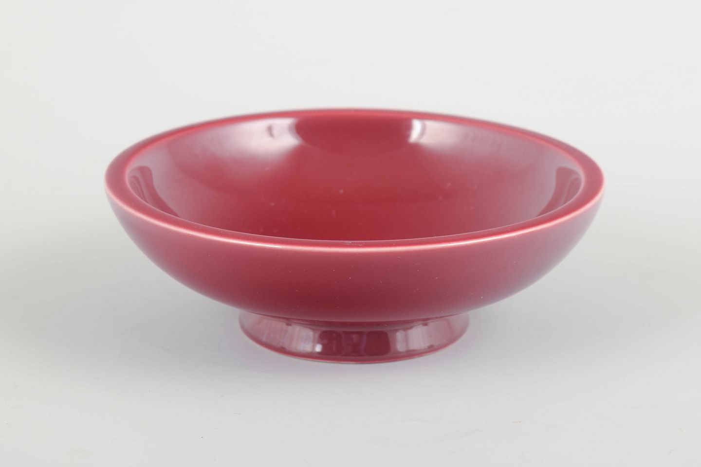 Rare bowl in red glaze, with low foot and refined, minimalist form. Unsigned.
