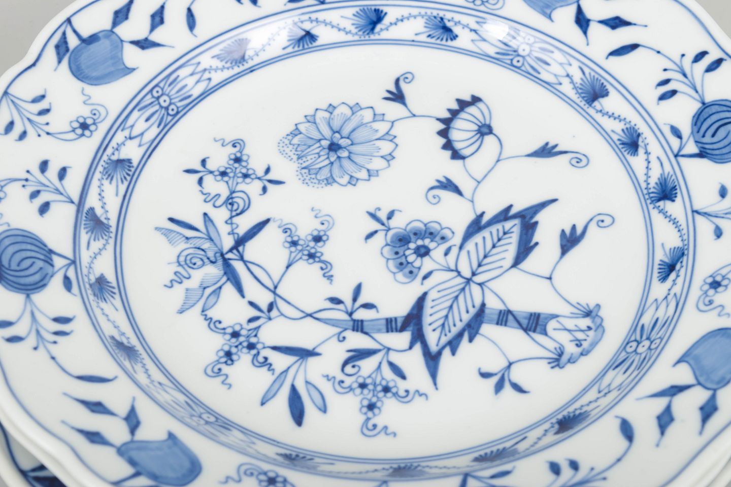 Meissen’s Zwiebelmuster was introduced in the 1730s and is one of the world’s most recognisable porcelain patterns. Painted by hand in cobalt-blue underglaze, it has been produced continuously for nearly 300 years. Early 20th-century examples are especially valued for their craftsmanship and crisp execution.