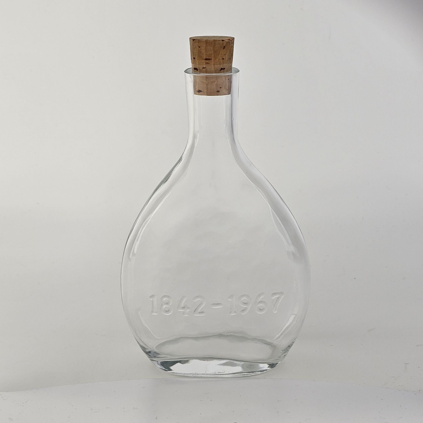 Brændevinsflaske med korkprop og teksten 1842-1967"Brændeviinsflaske for enkeltmand" blev oprindeligt indført som tiltag for den danske hær i 1842 og var en del af feltforplejningen frem til 1903. Flasken blev genproduceret i begrænset oplag i forbindelse med 125-års jubilæum i 1967.