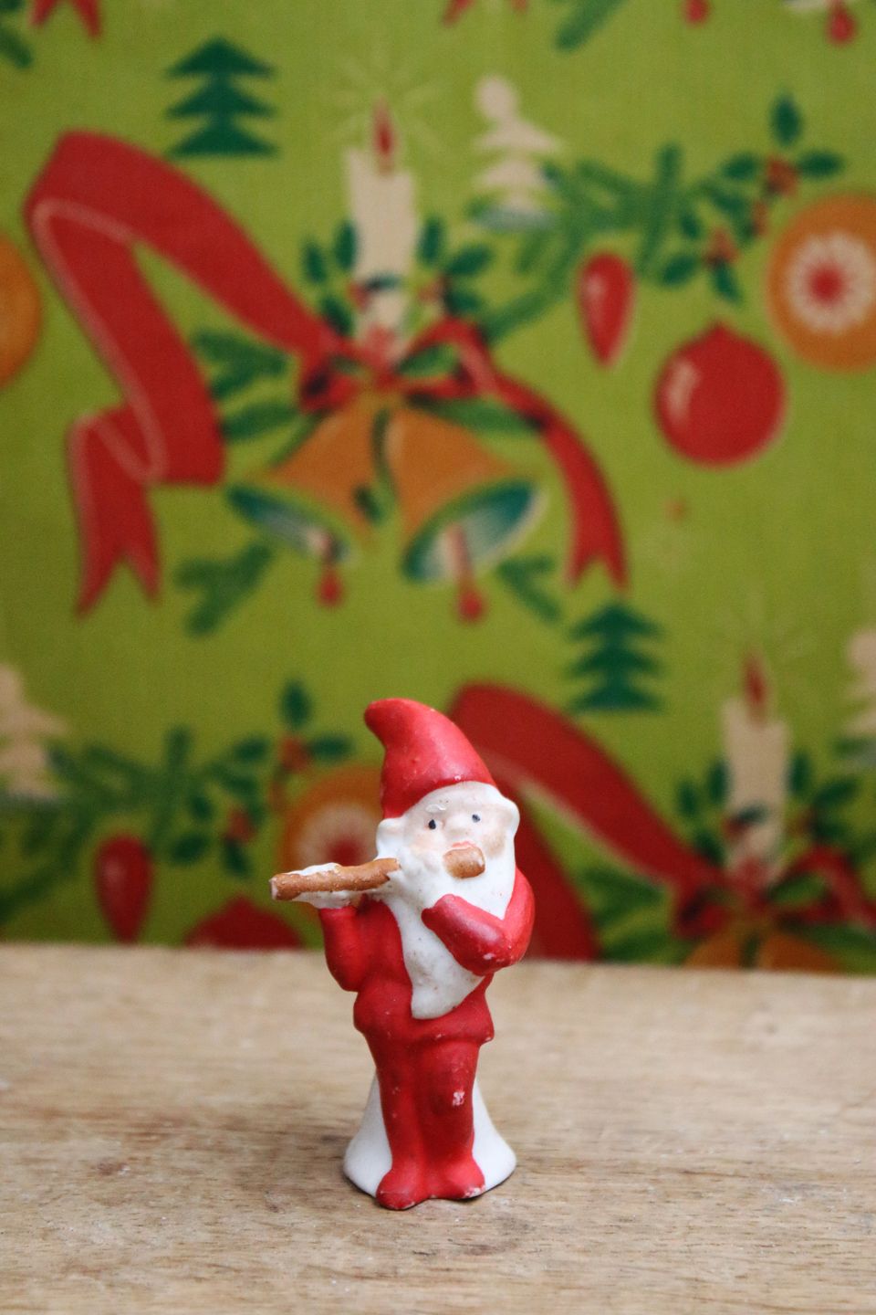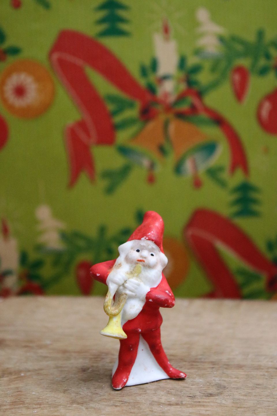 Little old biscuit gnomes with instruments. H: 5.5cm.1) with drum 2) with trumpet. 3) with whistle. Sold individually.