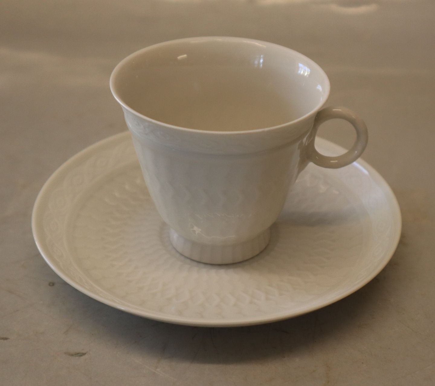 10 sets in stock11538 Coffee cup 6.3 cm high (diameter 7.5 cm) and saucer 13.5 cm Royal Copenhagen White Fan tableware (Viftestellet) Design Arnold Krog 1909. (Hvid vifte) In mint and nice condition
