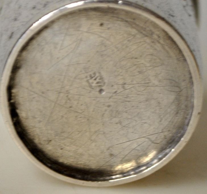 Erik Andersen Winther (1661 - 1725) Silversmith in Aarhus, Denmark: Baroque goblet with engravings: P, NS B - AND 1704. Stamped with master's mark. H.: 6 cm.