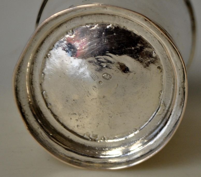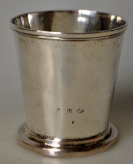 Adam Gottlob Fielsted (1794/1795 - 1866) Silversmith in Copenhagen; Denmark. Smooth silver goblet on a small foot. Stamped with city mark, master mark and guardein mark. H.: 6.6 cm.Item number: 28601