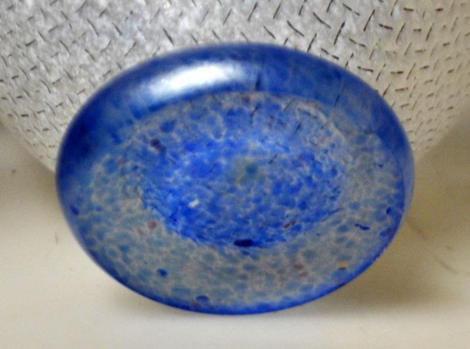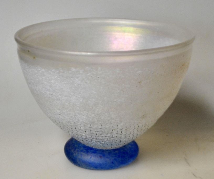 Kosta Boda "Network" bowl no. 57863, Design: Bertil Vallien, 1978, Sweden. Frosted glass with net design on blue foot. Signed. H: 8.5 cm. Dia: 11 cm.