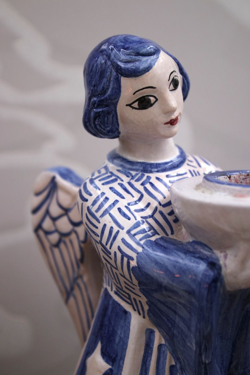 L. Hjorth ceramics rare large angel with blue / white glazeHeight: 22cm...