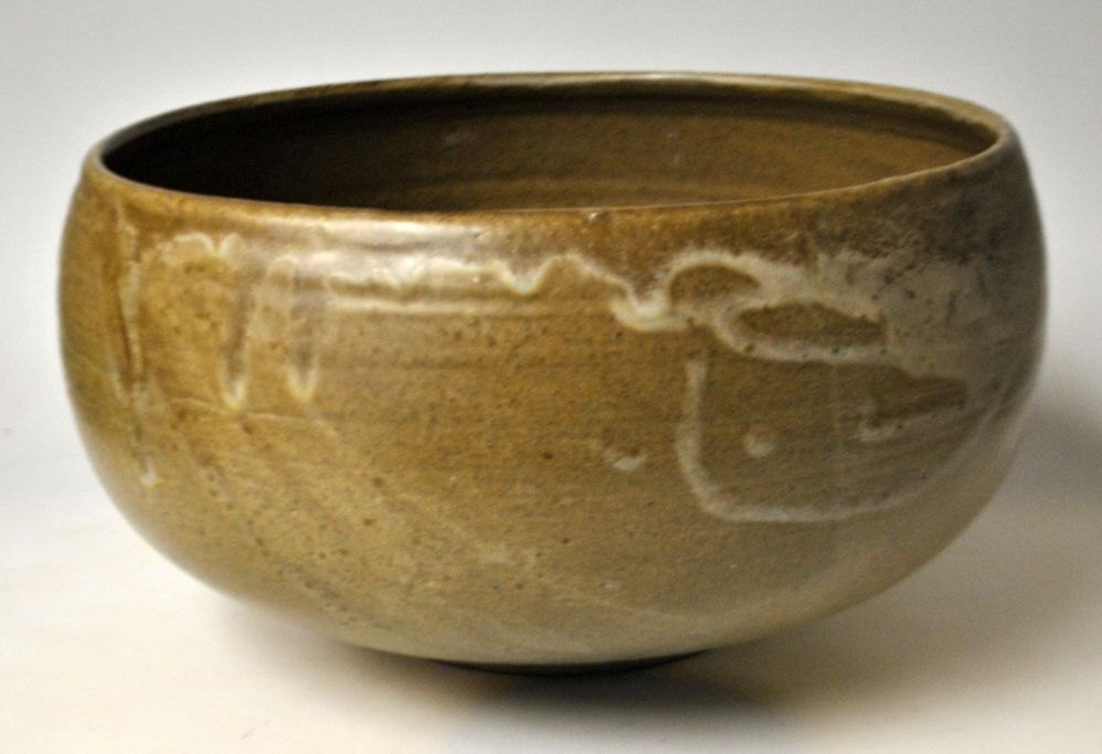Danish ceramist (20th century): Large table bowl. Unique. Red clay. With decorations. Unsigned. H.: 11.5 cm. Dia.: 23 cm.