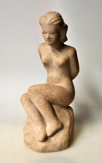 Rasmussen, Ove Fritz (1911 - 1973) Denmark: A seated nude woman. Sandstone figure. Signed. H.: 24 cm.Item number: 28588