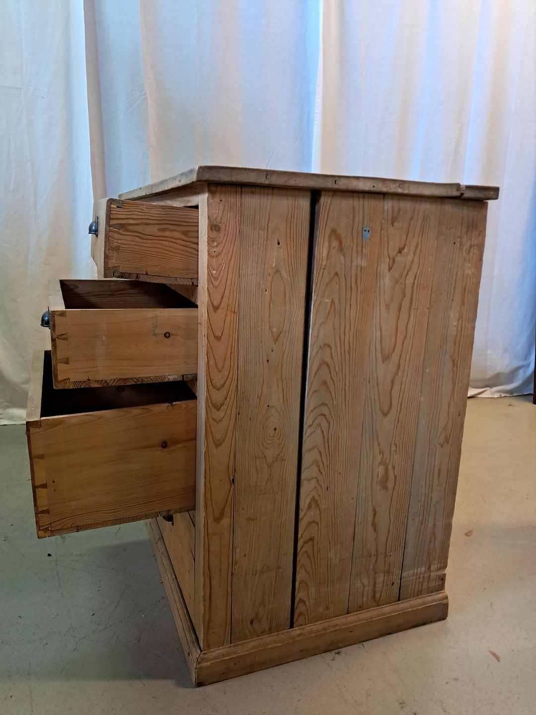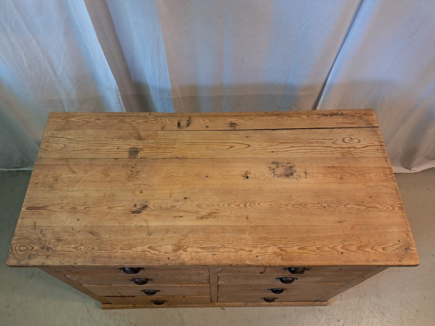 Disk i massivt fyrretræ, fra 1920erne.Den har brugsspor.