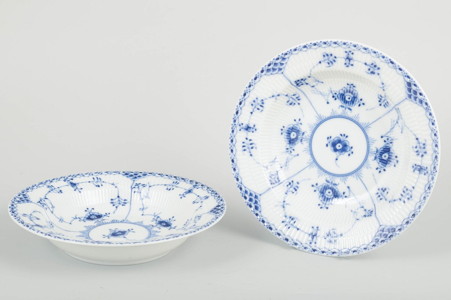 Royal Copenhagen Blue Fluted Half Lace, model 1/566.Two deep plates, 1980s.