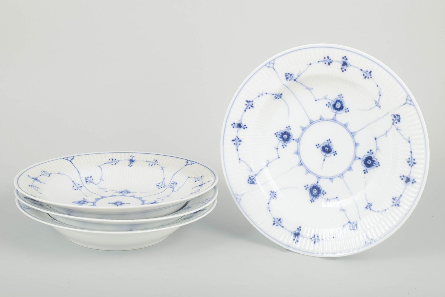Royal Copenhagen Blue Fluted, model 1/165.Set of four deep plates.