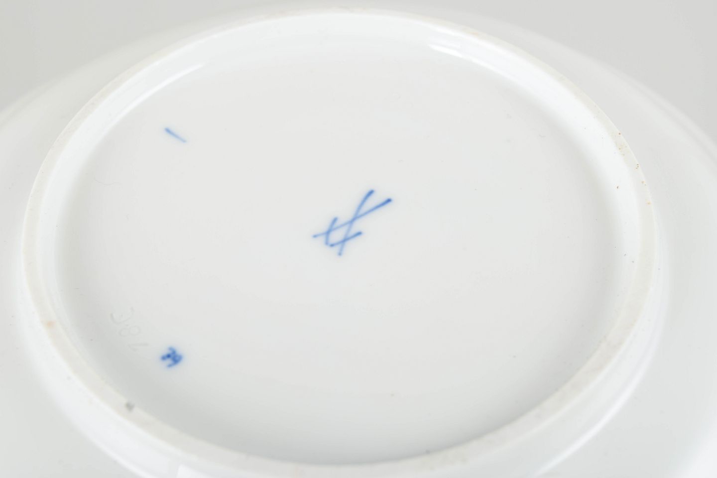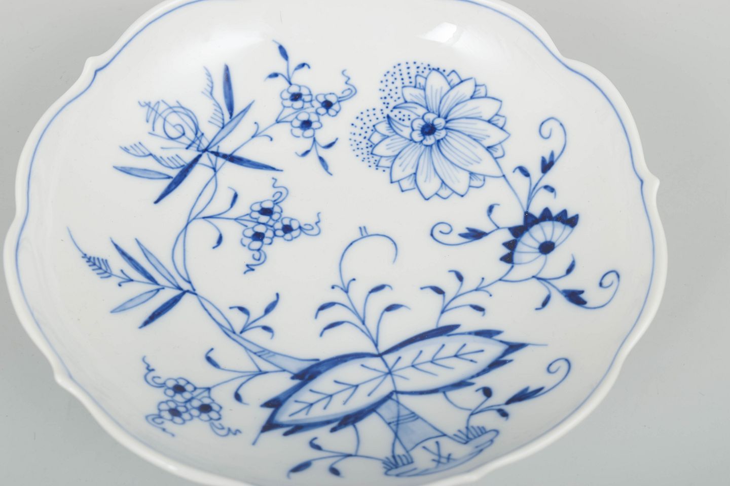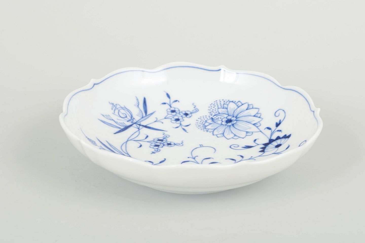 Meissen – “Onion Pattern” Bowl, Mid-20th CenturyHand-painted Meissen “Onion Pattern” (Zwiebelmuster) bowl, first quality. The piece features a classic scalloped rim and a richly saturated cobalt-blue decoration, executed on exceptionally fine porcelain and reflecting the highest standards of craftsmanship.