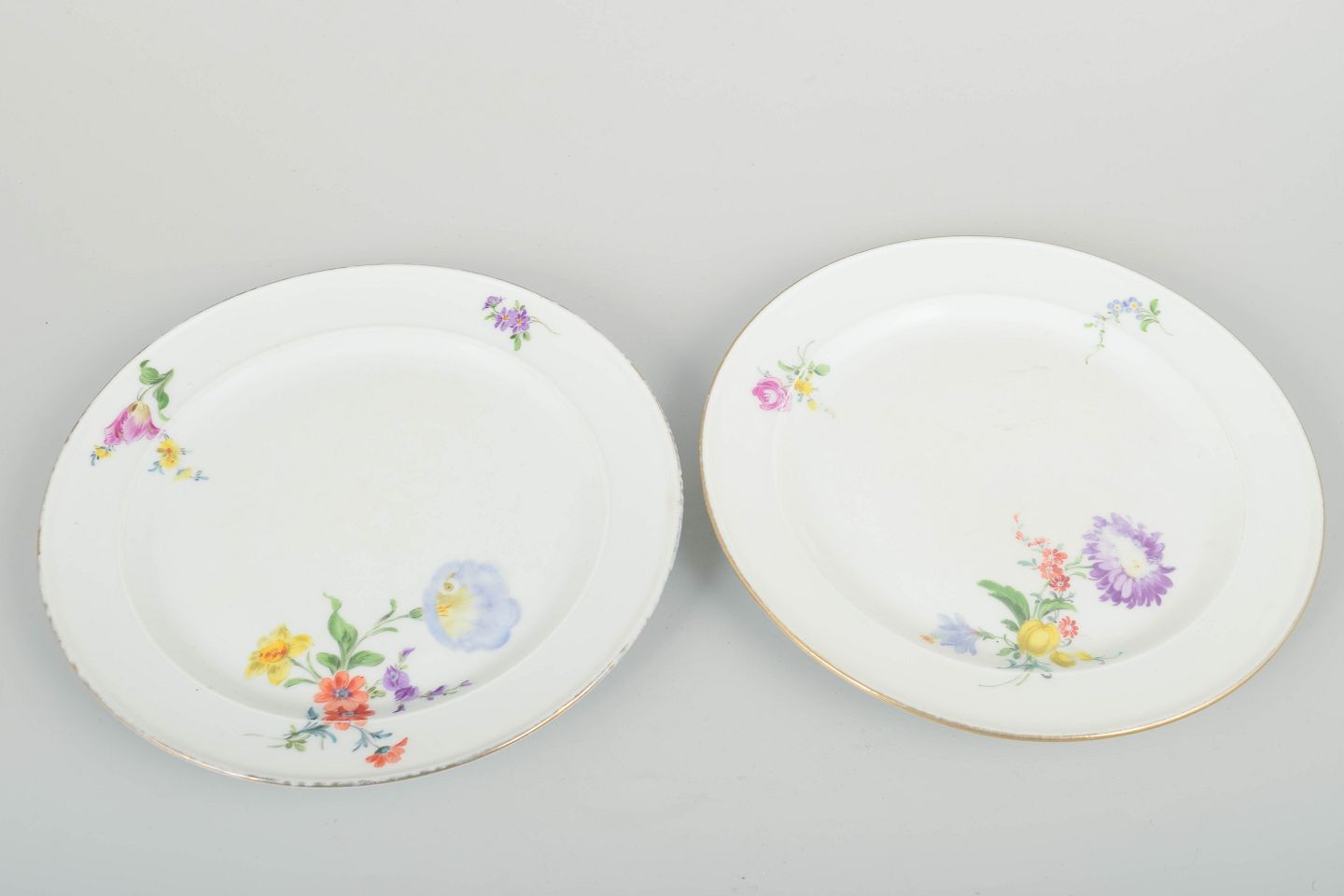 Meissen, two plates, hand-painted.Two elegant porcelain plates with hand-painted floral decorations in classic Meissen style. Both examples feature a fine gold rim.