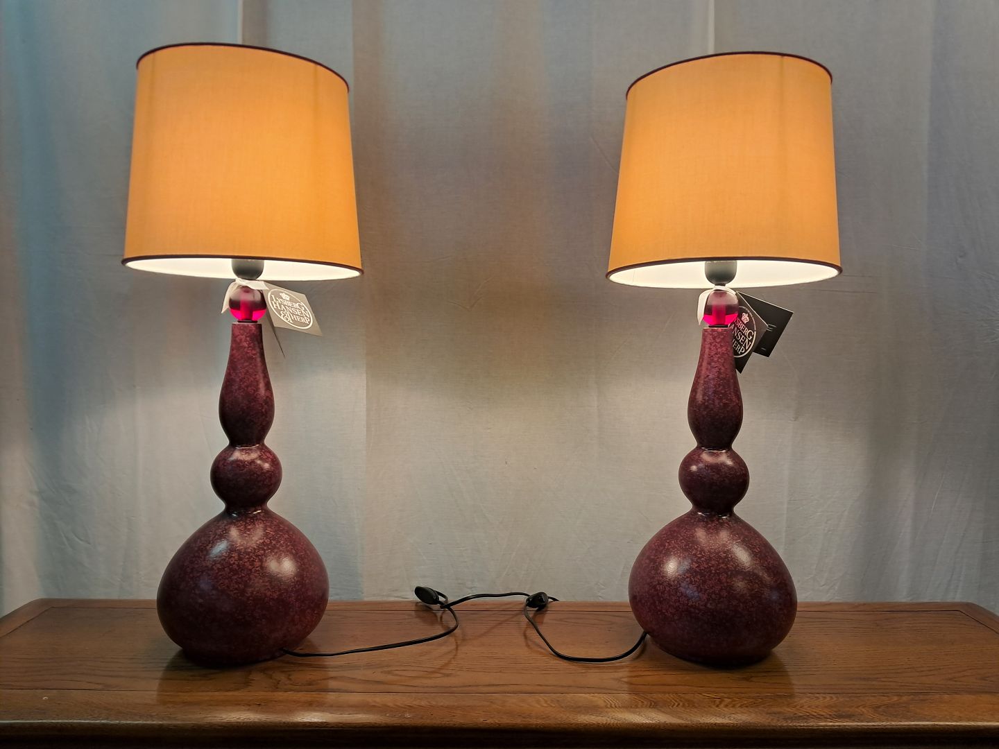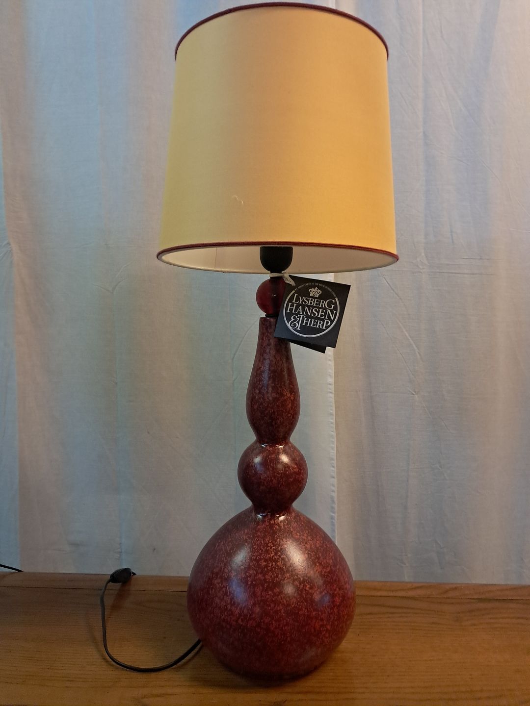 2 Lysberg Hansen og Therp bordlamper i pocelæn med skærme, fra 2000erne.De har brugsspor.