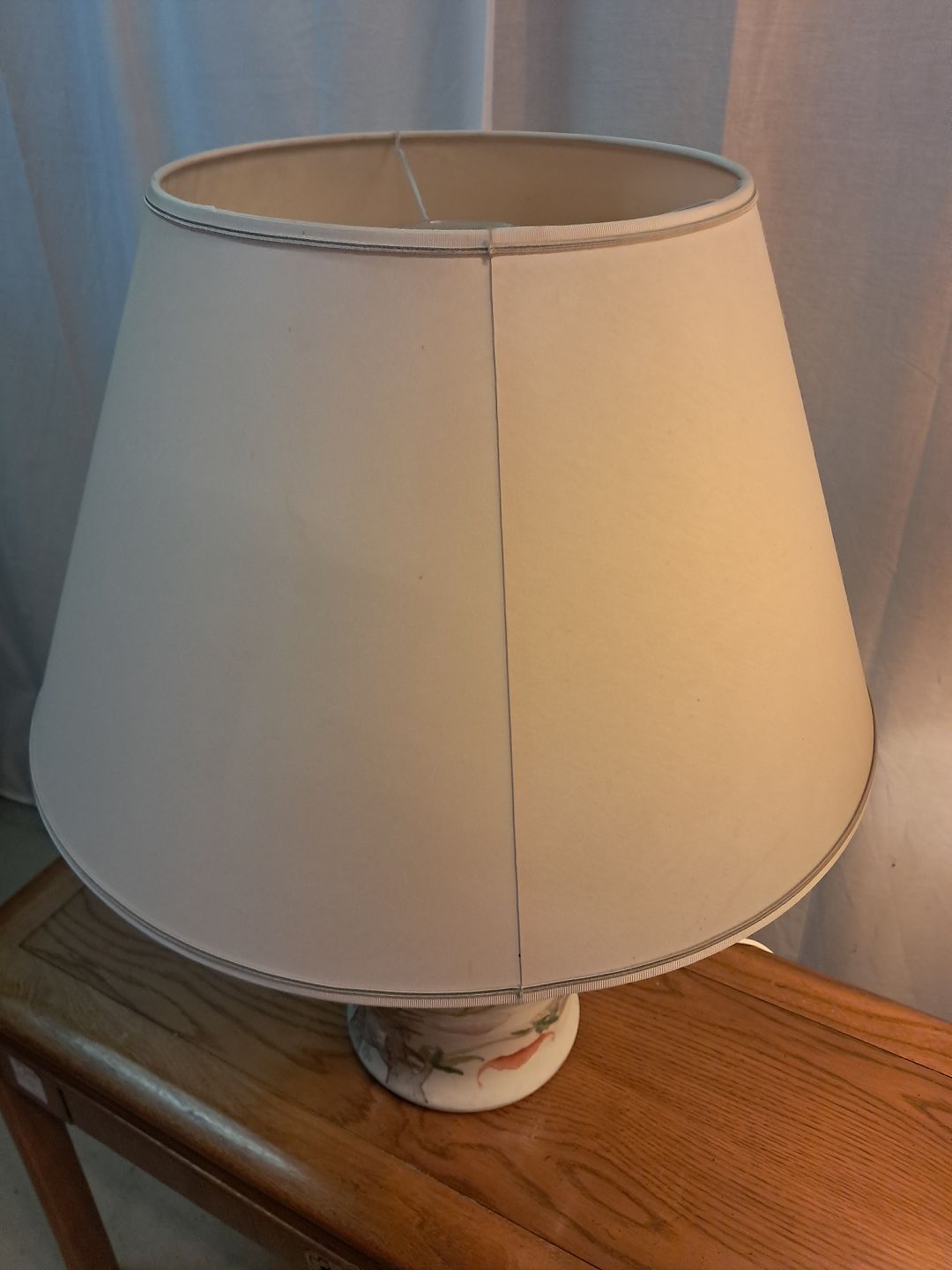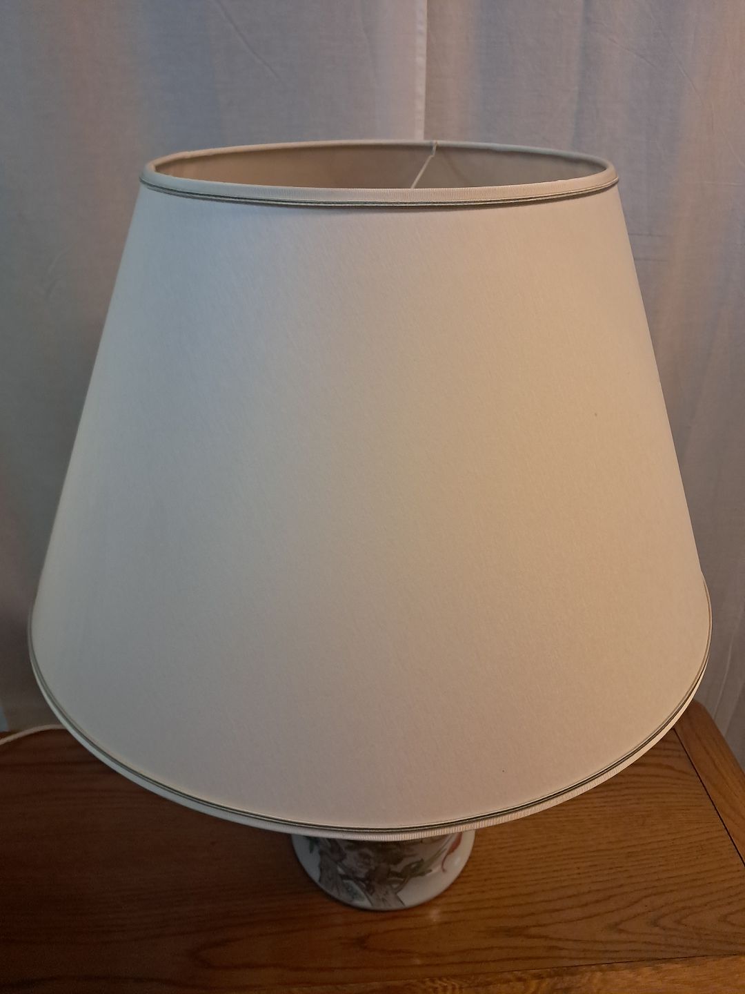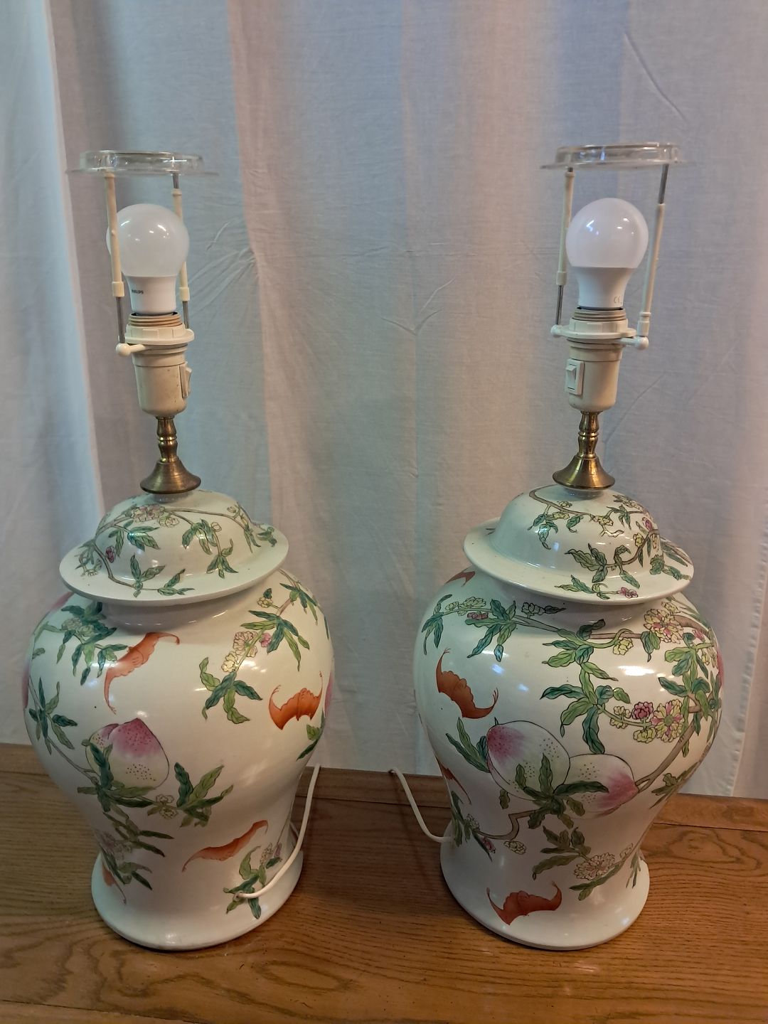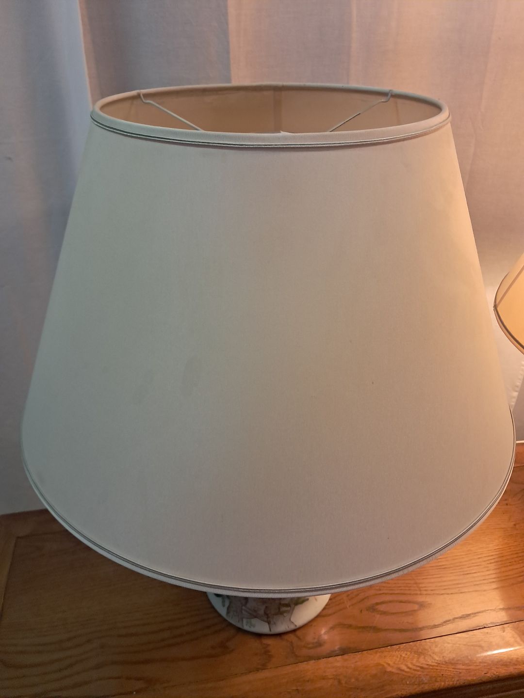 2 Asiatiske bordlamper i pocelæn med skærme, fra 1990erne.De har brugsspor.