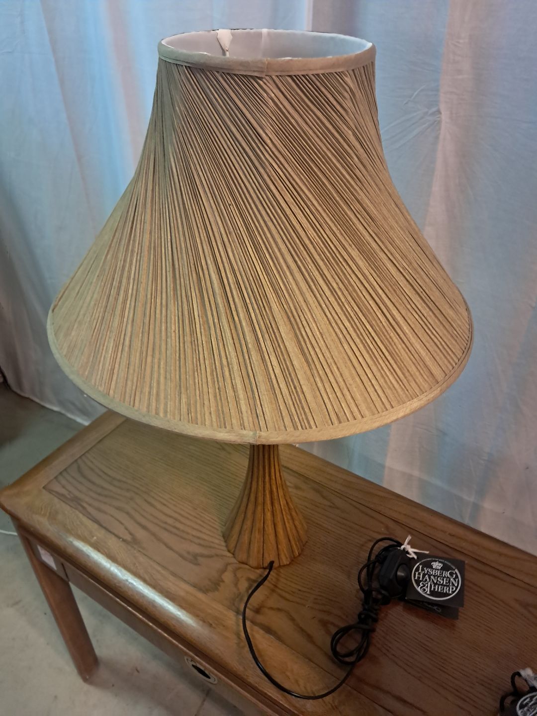 2 Lysberg Hansen og Therp bordlamper i pocelæn med skærme, fra 0erne.De har brugsspor.