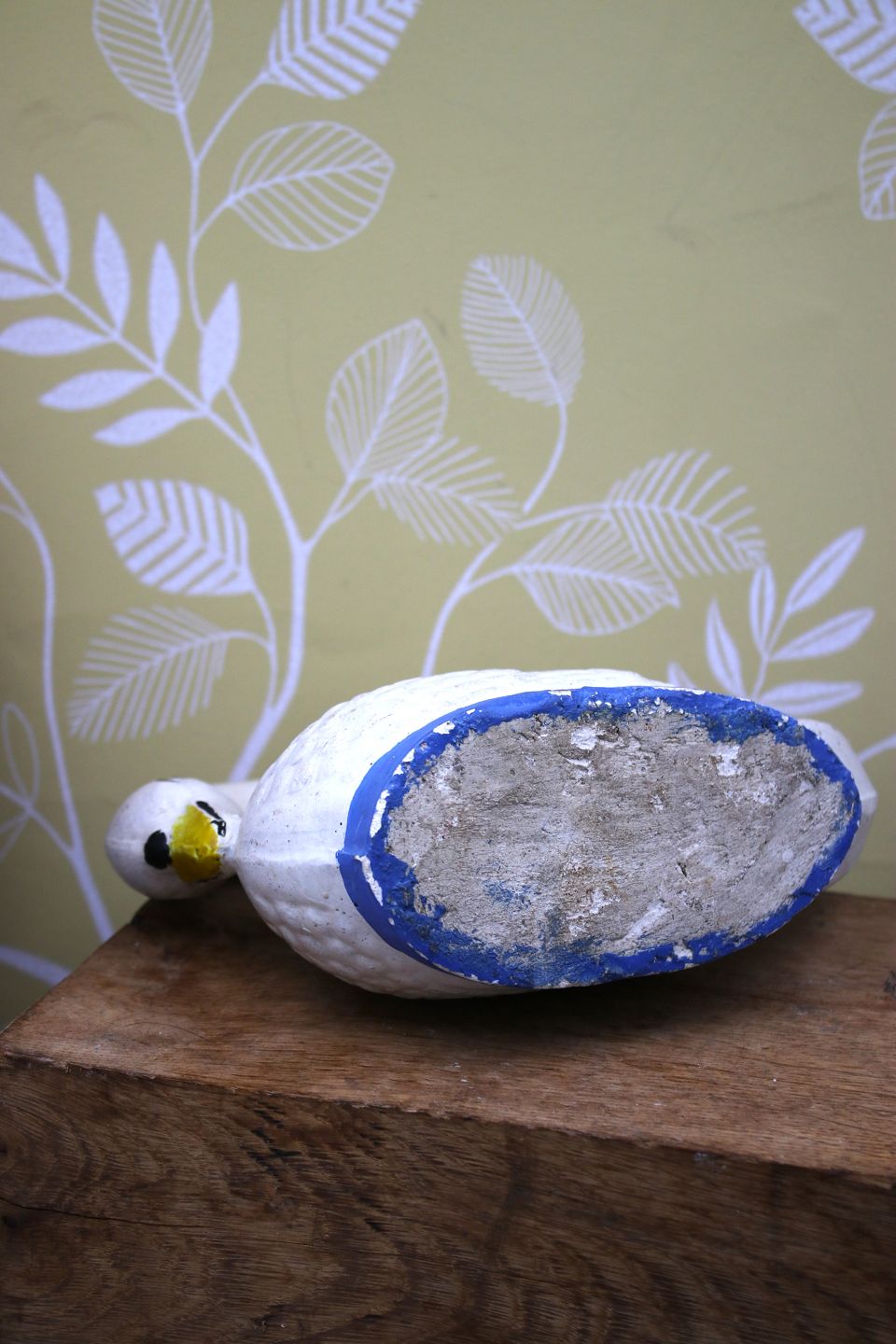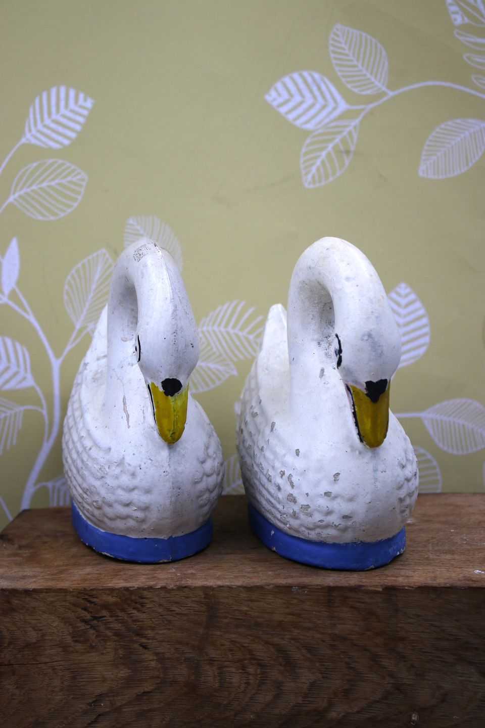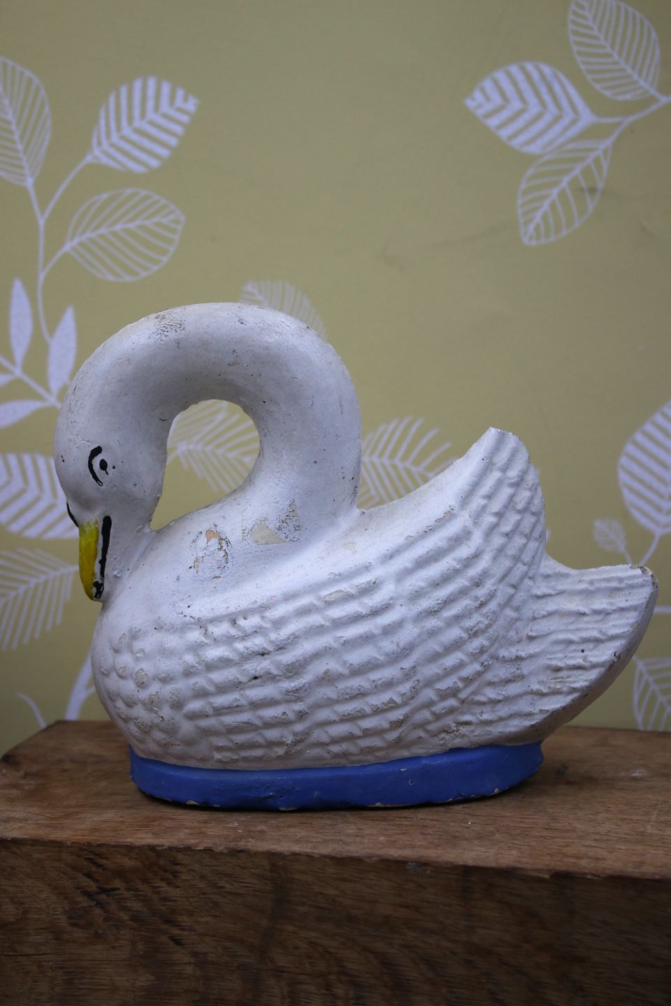 Decorative, old swan in sandstone with old paint and a fine patina.H: 14.5cm. L: 18.5cm. W: 8cm. (2 pcs. in stock)