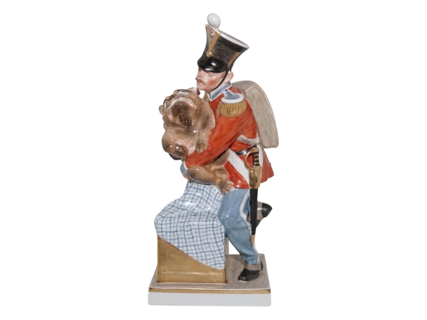 Royal Copenhagen overglaze figurine, Soldier and Dog from the Hans Christian Andersen Fairy Taile Tinderbox.Decoration number 1156.